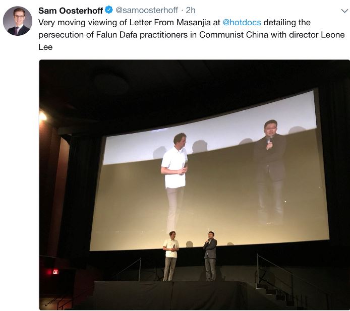 加拿大安省有史以来最年轻的省议员、现年二十岁的山姆·奥斯特霍夫(Sam Oosterhoff)前来观看此次的公映。他说:“法轮大法的价值观,真、善、忍,是人们值得庆祝的价值观。这些价值观非常伟大,真的对每个人都非常有益。”而信仰这个理念的法轮功学员却遭到残酷的迫害,“观看这部影片真的让我感到很悲伤。希望我能够帮助(结束迫害),不管是否只是对一些人和政府施加压力等,我今天就是通过来参加此次的电影公映来表明我的支持。”