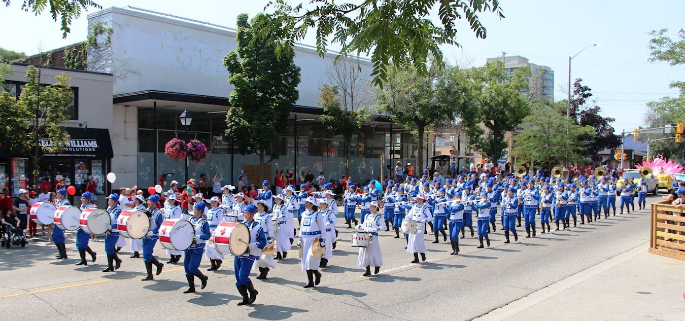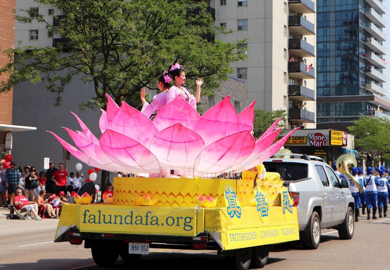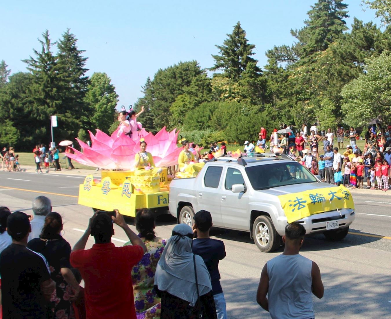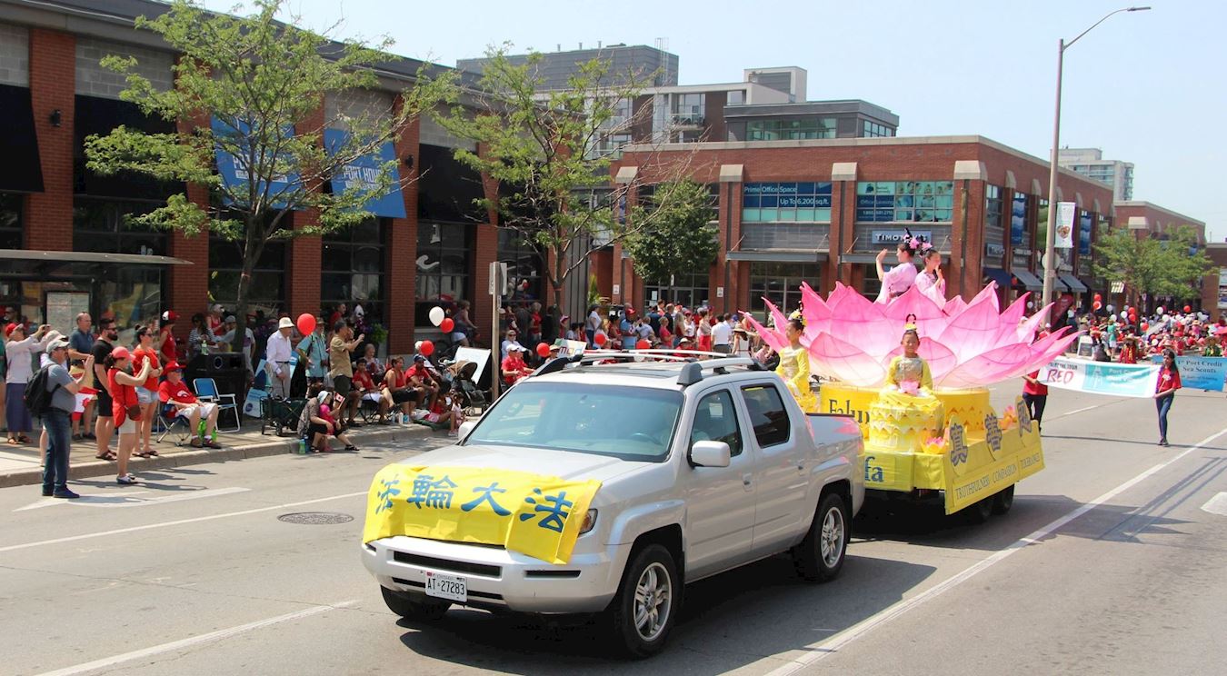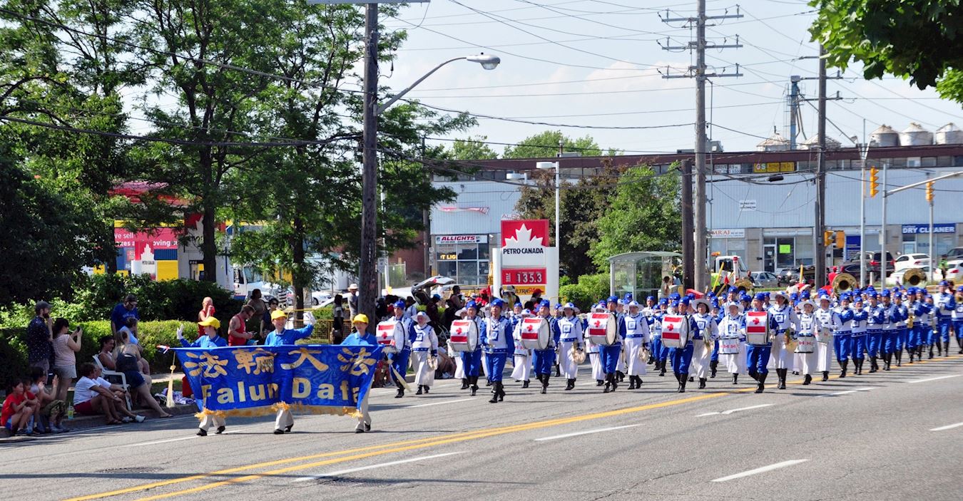 ![]() 图6~7:二零一八年七月一日,多伦多法轮功学员的天国乐团和莲花花车当天应邀参加下午两点多伦多市士嘉堡的加拿大国庆游行。 |