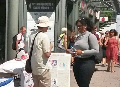 【明慧网二零一八年七月三十一日】二零一八年七月二十八日中午,法轮功学员在汉堡市中心的步行街史比塔勒街(Spitalerstrasse)上举办信息日活动,通过功法展示、信息展板和真相横幅,以及模拟活摘器官“手术台”等,告诉人们法轮功是什么,以及发生在中国、中共迫害法轮功的真相。尽管天气炎热,许多路人还是在信息展台前停下来、了解真相。