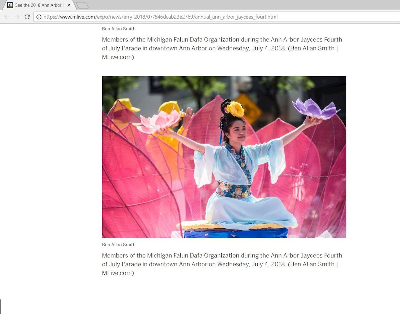 随后密西根媒体集团Mlive在报道本次游行时也刊登了法轮功团体的游行图片。