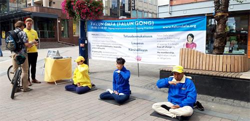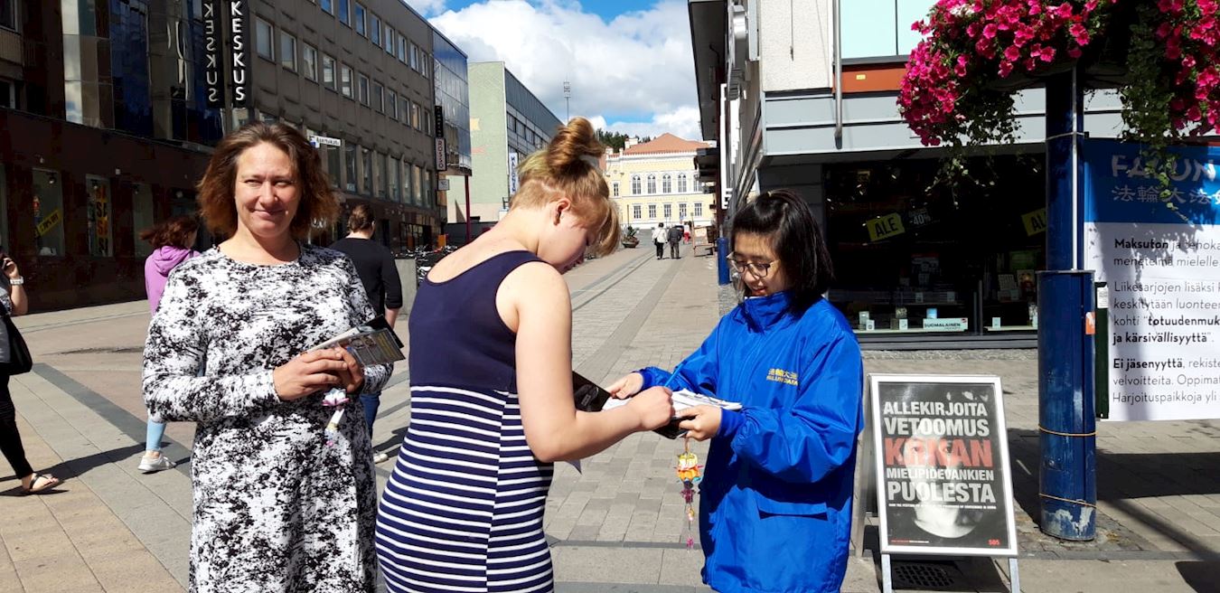 【明慧网二零一八年七月六日】二零一八年六月三十日,芬兰部份法轮功学员来到于韦斯屈莱市(芬兰语 Jyv?skyl?),向这里的民众传播真相,于韦斯屈莱是芬兰中部的一座城市,有“芬兰的雅典”之称。