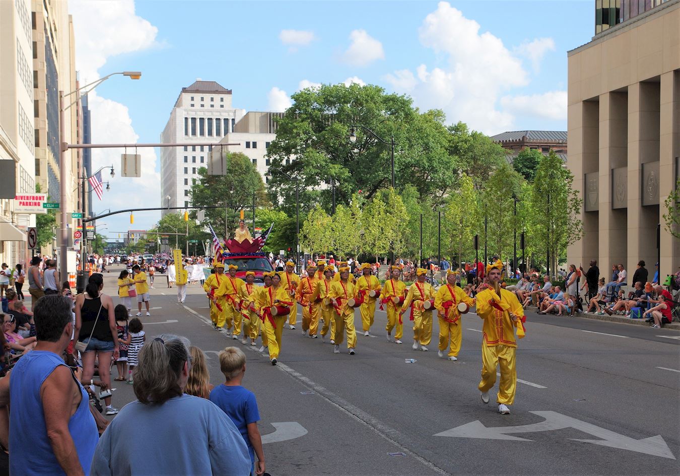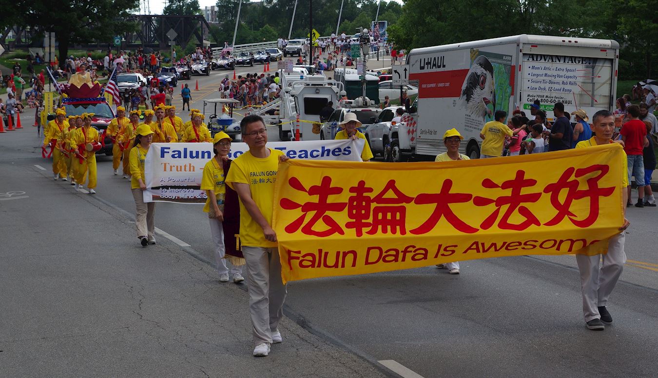 据活动主办方称,有至少十万居民前来观看了这一盛大游行。作为唯一亚裔为主的游行团队,法轮功学员把“真、善、忍”的美好传递给了俄州人民。