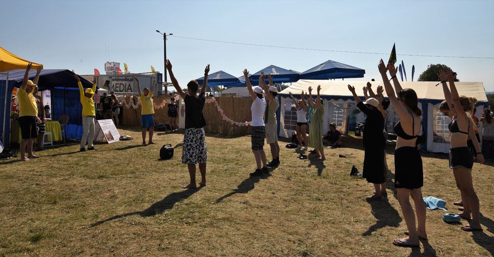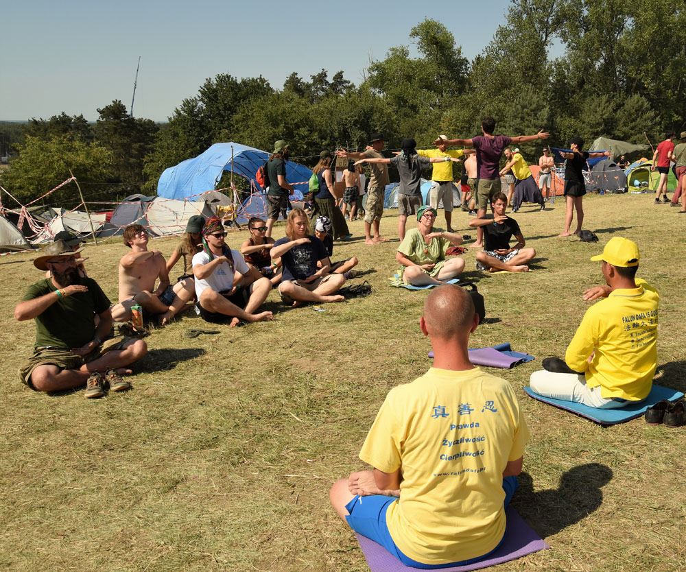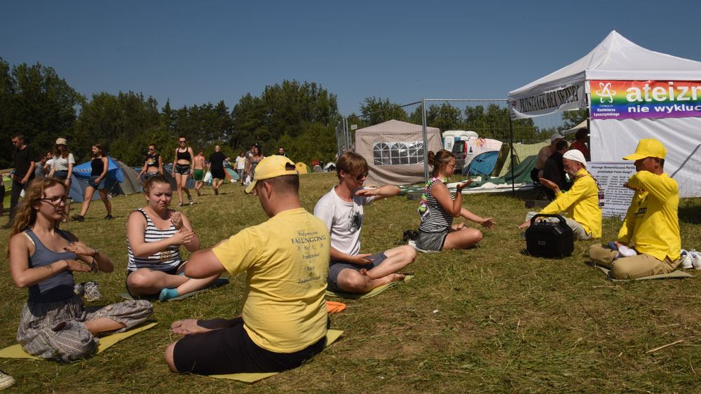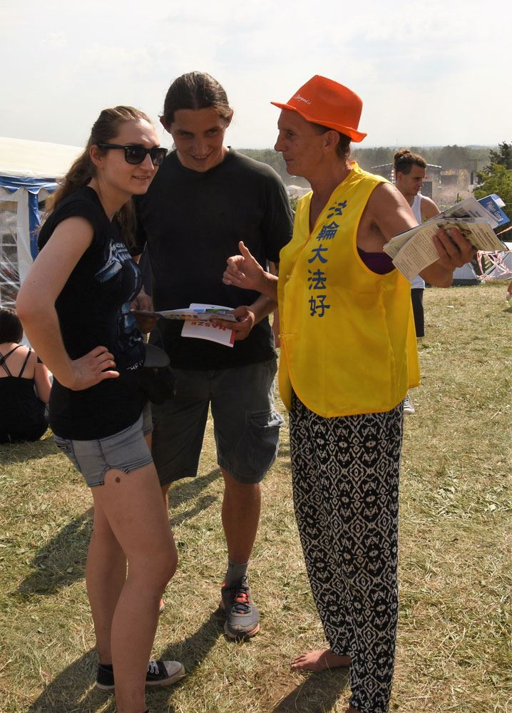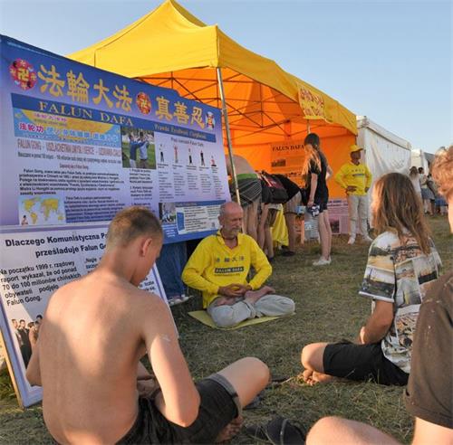 波兰法轮功学员连续三年受邀与来自德国、捷克和斯洛伐克的法轮功一起在音乐节上举办介绍法轮大法、教学法轮功及叠莲花,学写中国汉字等活动,受到广泛的欢迎,在今年气温高达摄氏三十二、三度的烈日下,络绎不绝的年轻人依然挤在法轮大法的帐篷前,渴望了解法轮功真相。