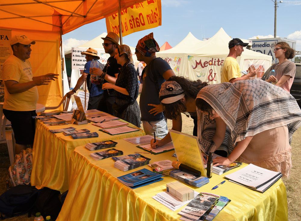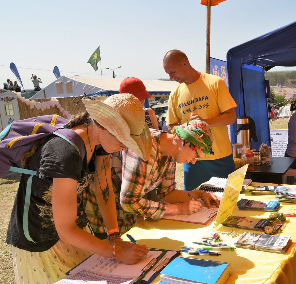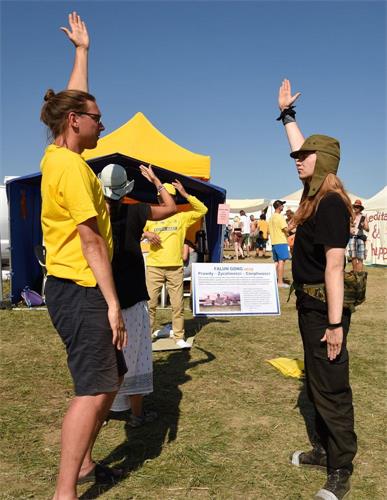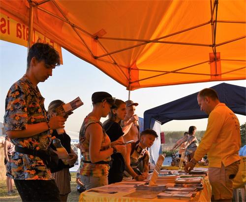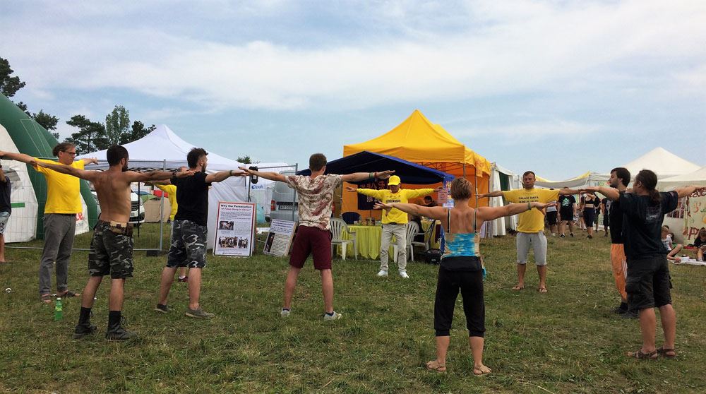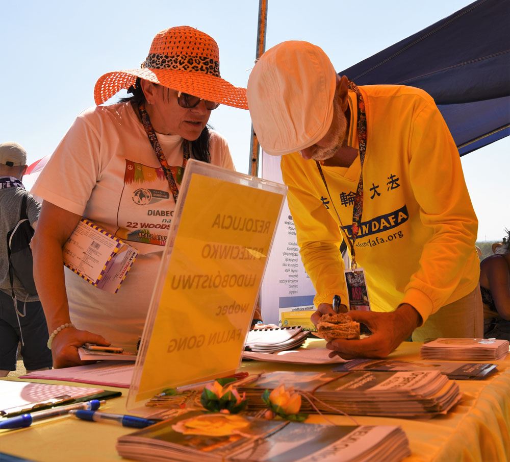 波兰法轮功学员连续三年受邀与来自德国、捷克和斯洛伐克的法轮功一起在音乐节上举办介绍法轮大法、教学法轮功及叠莲花,学写中国汉字等活动,受到广泛的欢迎,在今年气温高达摄氏三十二、三度的烈日下,络绎不绝的年轻人依然挤在法轮大法的帐篷前,渴望了解法轮功真相。