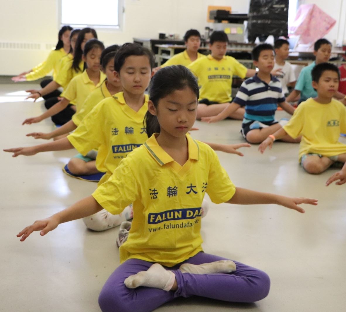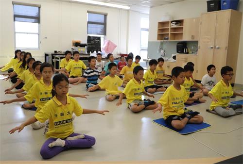 ![]() 图1~3:二零一八年多伦多明慧学校夏令营的法轮大法小弟子们参加每天的炼功和学法。 |