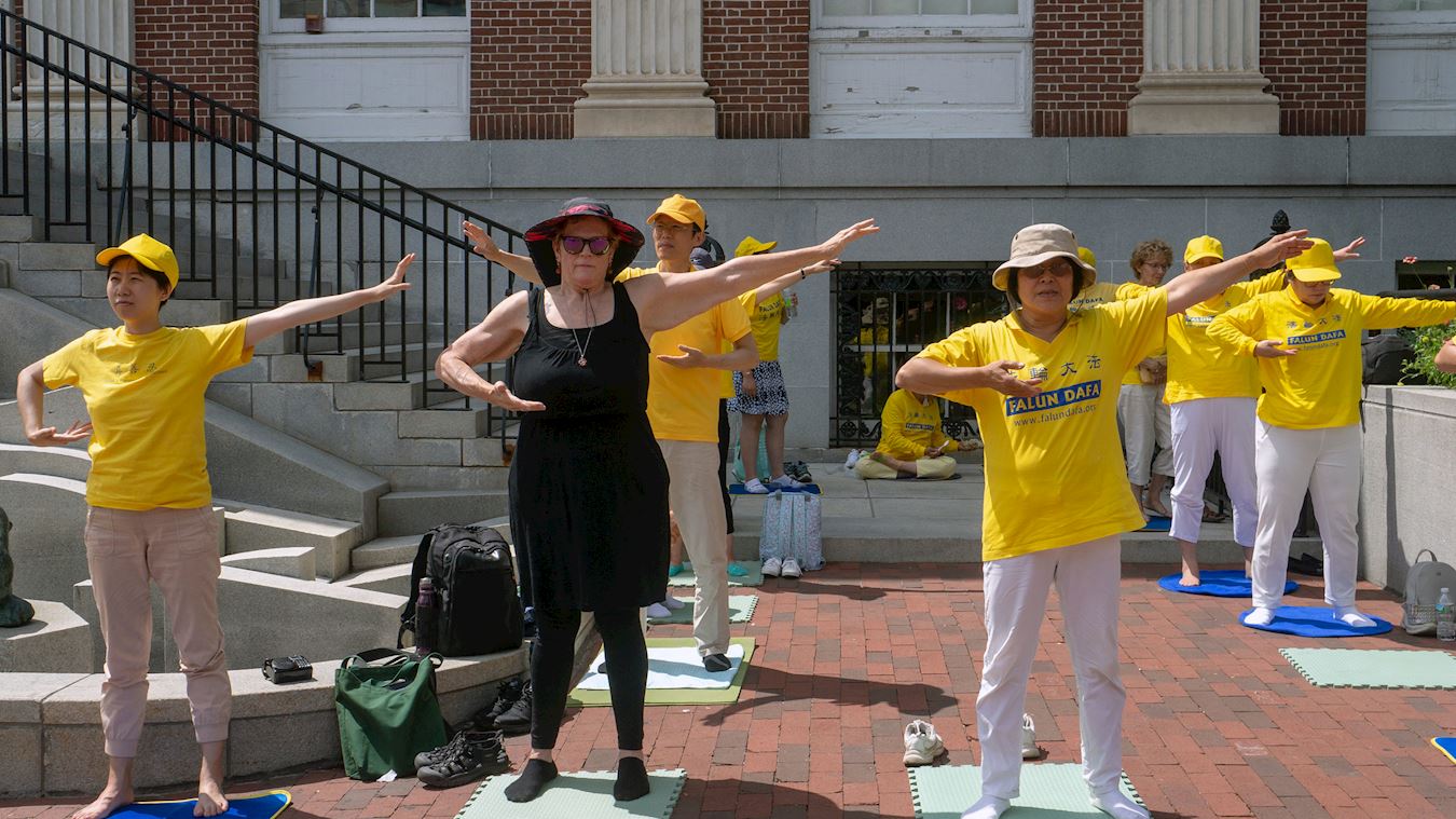 【明慧网二零一八年八月十七日】(明慧记者程德佛蒙特州伯灵顿市报道)家住美国佛蒙特州艾塞克斯村的萝丝·戴梦德(R. Diamond)是上个月在伯灵顿市教堂街驻足观看法轮功学员炼功后,表示想参加法轮功简介班的新学员。