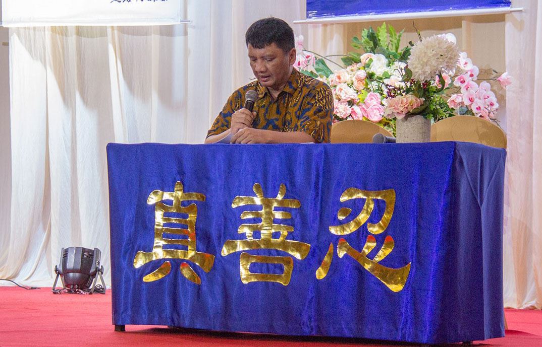来自雅加达的雅妮在法会上交流了自己遇到家庭的波动,失去了房子、父亲,在关键时刻,师父的高层次法理让她醒悟,不能只是修表面而没有实修,她体悟到抱着执著心那么长时间,也没有向内找,是她修炼中的最大障碍。她认为,人世间很容易令人迷失,要珍惜修炼的机缘,不能白白浪费这万古机缘,一切有缘的众生在期盼。