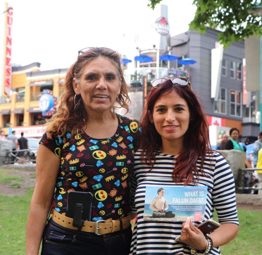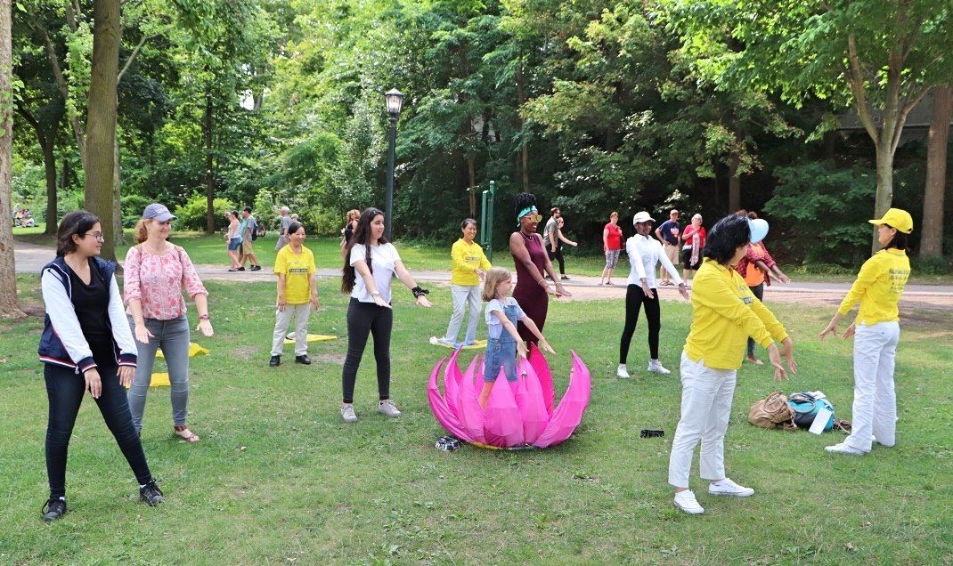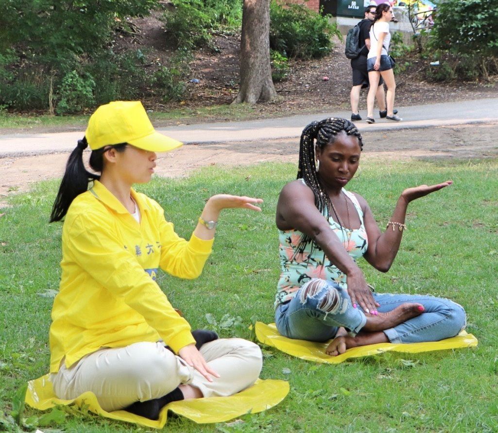 来自加拿大布兰普顿(Brampton)的尼希亚(Neshia)看到法轮功学员炼功的场面,她主动要了一张传单认真阅读后,决定要学法轮功。她说:“她们的平静吸引了我。生活中太多烦心的事了,我的脑子常常会很乱,有时还失眠。我一直在寻找一种东西能让我平静下来,清除我身体和思想中不好的东西,能让我有好的状态生活和工作。我想我现在找到了。”