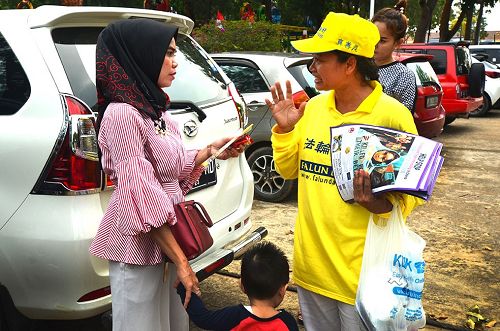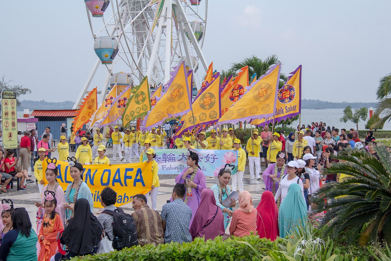 【明慧网二零一八年八月二十二日】二零一八年八月十七日是印尼的国庆日,也是印尼法轮功学员在巴丹岛举办法轮大法修炼心得交流会的前夕。学员们在最大的海滨游乐园游行,向民众介绍法轮功,丰富多彩的游行队伍和修炼者蓬勃向上的精神风貌吸引了众多游客的关注。