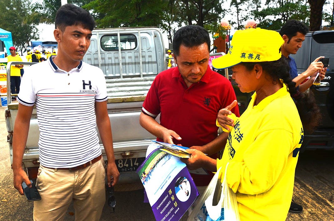 巴丹岛是著名的旅游景点,除了当地居民,还有很多来自中国大陆、新加坡、马来西亚等国的游客。人们看到这个精彩的游行,纷纷拿出相机拍照。收到资料和莲花的游客们,脸上满是喜悦。得知法轮功在中国受到中共打压时,人们感到吃惊,这样以真、善、忍为准则而且已经福泽全球无数世人的高德大法,从一九九九年开始被中共残酷,一直持续到今天。