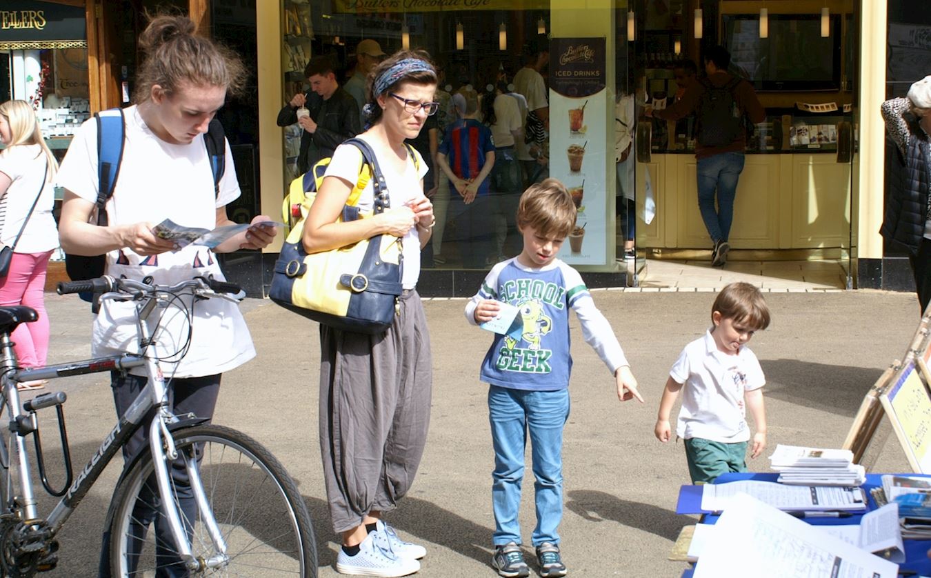 ![]() 图3~4:人们驻足了解真相,有的与学员攀谈,有的阅读展板。 |