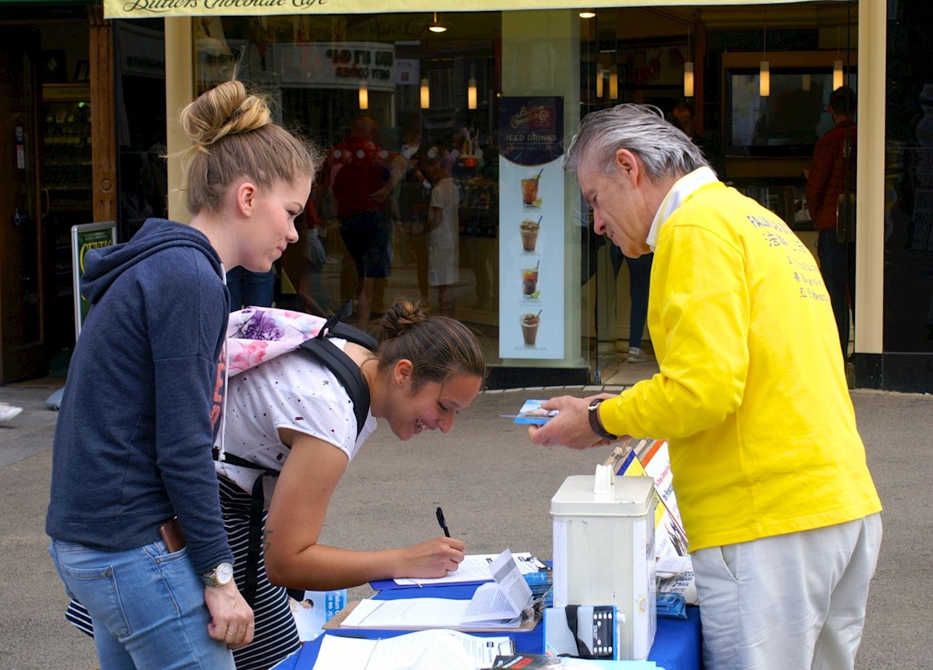 ![]() 图10:丹尼尔(Daniel)和爱露易丝(Eloise)很高兴能够为在中国被迫害的法轮功学员签名支持 |