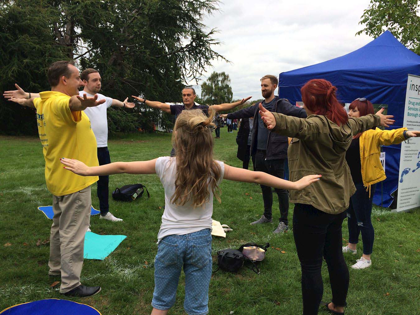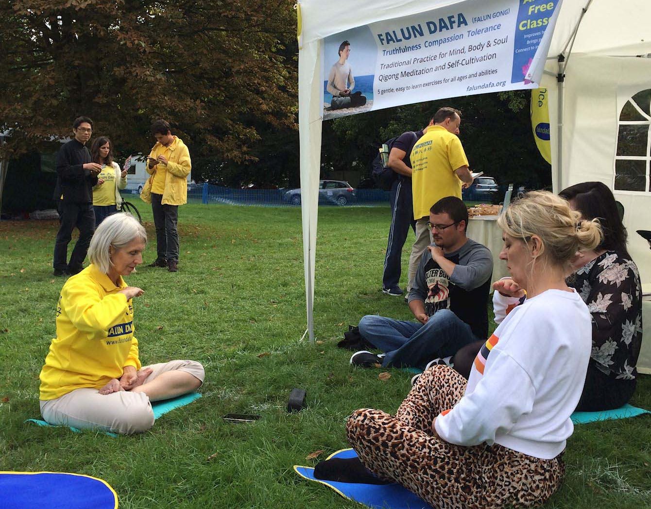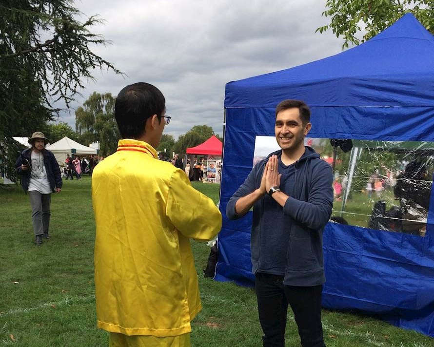 有的游客对法轮功学员说,我记得去年你们也来了;一对带着孩子的夫妇很喜欢这个功法演示,他们表示曾在大英博物馆见到过法轮功学员炼功场景;另一位女士则表示两年前在就读的大学里,见到了法轮功学员设立的展位,这次她想要更多地了解并尝试炼功。还有些人,当了解到法轮功有祛病健身的效果,以及为人处事遵照“真善忍”为原则,能让心态变得平和宁静,遇事体谅宽容,他们表示这就是自己想要的,回去后一定会上网了解并找当地的炼功点学功。
