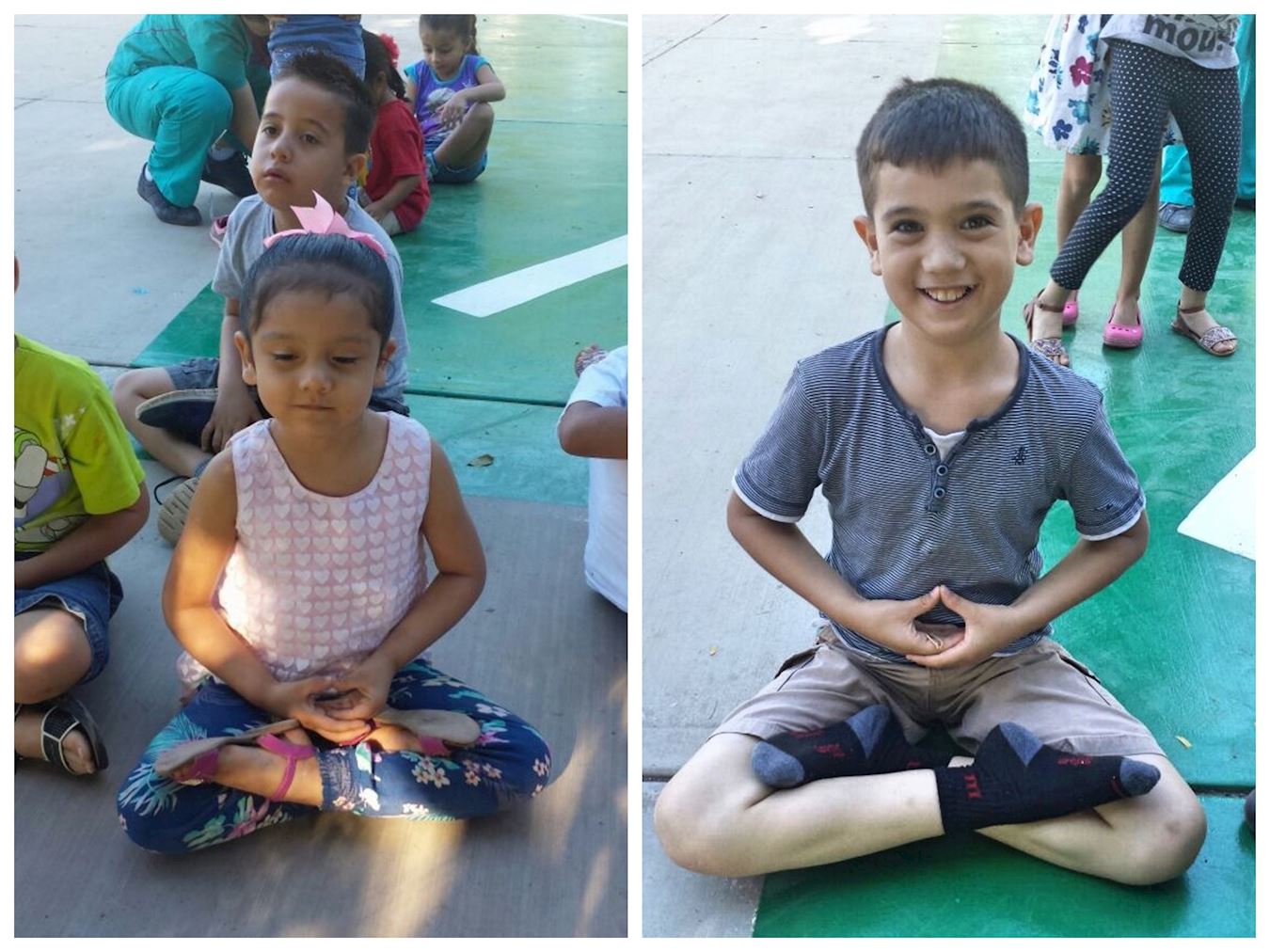 ![]() 图3:小朋友们学打坐时也很专注、认真。 |
