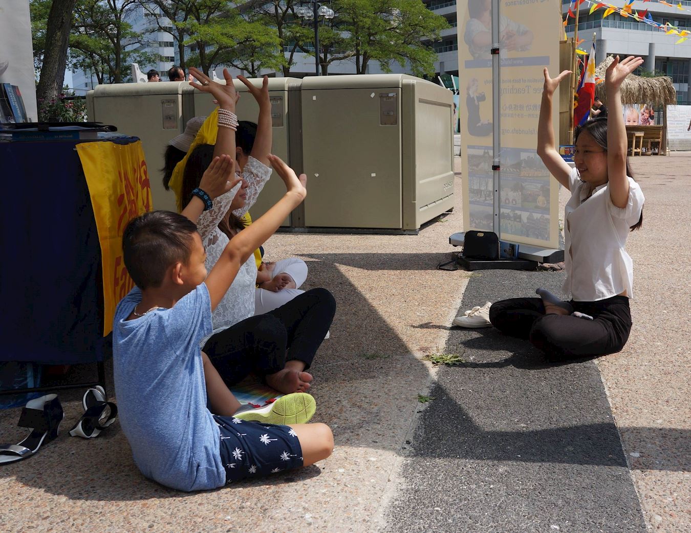 ![]() 图2:多伦多首届菲律宾美食节上,游客现场学炼法轮功 |