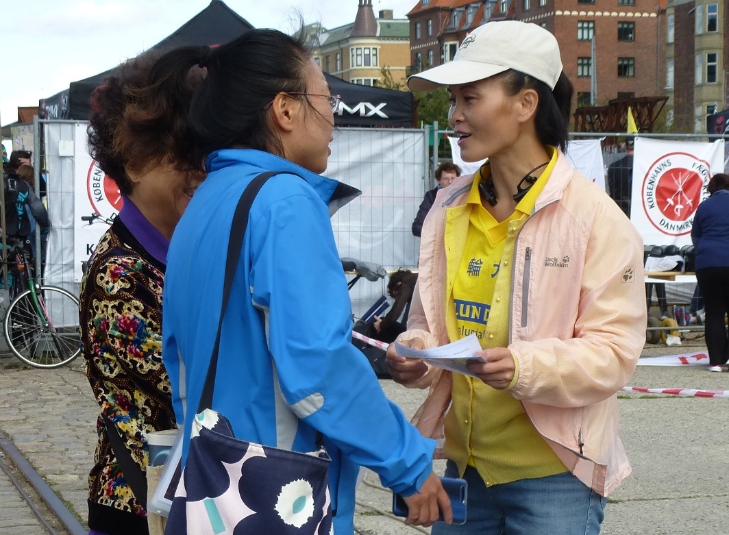 胡安(Juan)是居住在港口文化节附近的一位丹麦居民。周末的时候,她来到文化节举办地,被法轮大法悠扬的炼功音乐所吸引,驻足在帐篷前。法轮功学员热情地迎上去,与她轻松地聊了起来,从法轮功给予人身心健康的修炼讲起,讲到了在中国大陆发生的中共对法轮功的迫害。