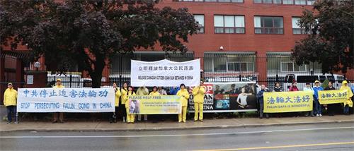 ![]() 图1:九月十日,渥太华部份法轮功学员在中使馆前呼吁立即释放加拿大公民孙茜 |