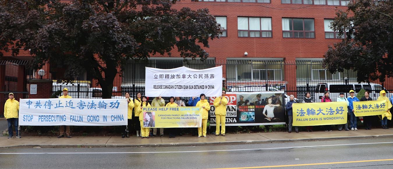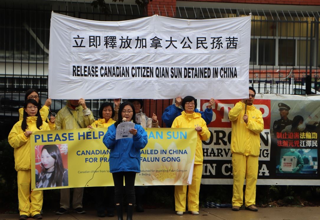 二零一八年九月十日,渥太华部份法轮功学员在中使馆前呼吁立即释放加拿大公民孙茜。同一天,九月十日下午一点半多伦多法轮功学员在中领馆前召开新闻发布会,抗议中共迫害法轮功,要求无条件立即释放孙茜。