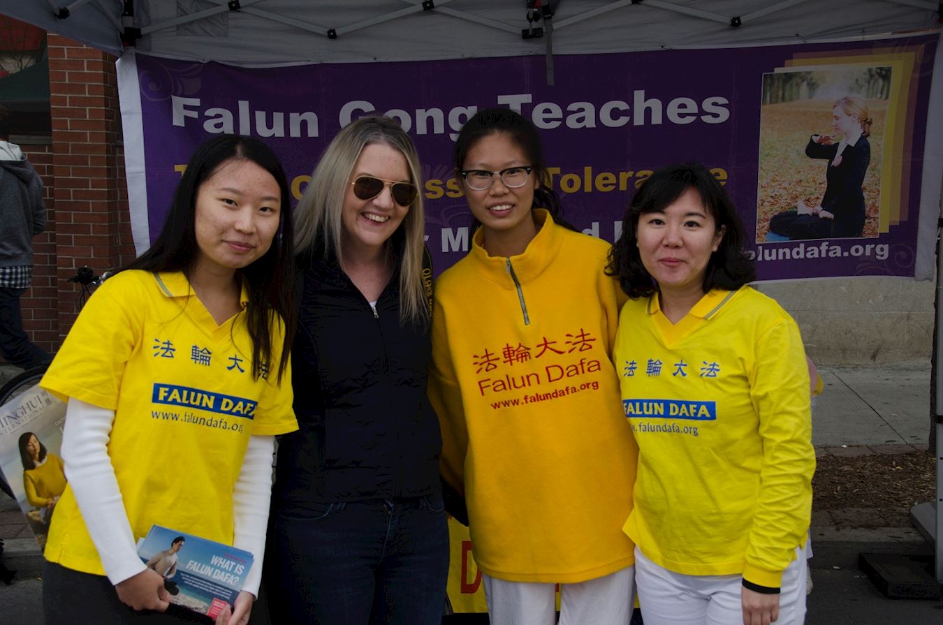 比埃斯(Barice)女士和她先生一同来参加节庆。她问学员中共活摘法轮功学员的器官是否是真的。学员告诉她中共“活摘”器官是真实存在的,是这个地球上从未有过的邪恶,并跟她简单介绍了加拿大的独立调查员对这一罪行的调查报告。比埃斯女士说:“那太邪恶了,我要把这个放到我的首页上让更多的人知道。”法轮功学员送给她一个莲花护身符,请她记住“真善忍,法轮大法好!”比埃斯女士表示感谢。
