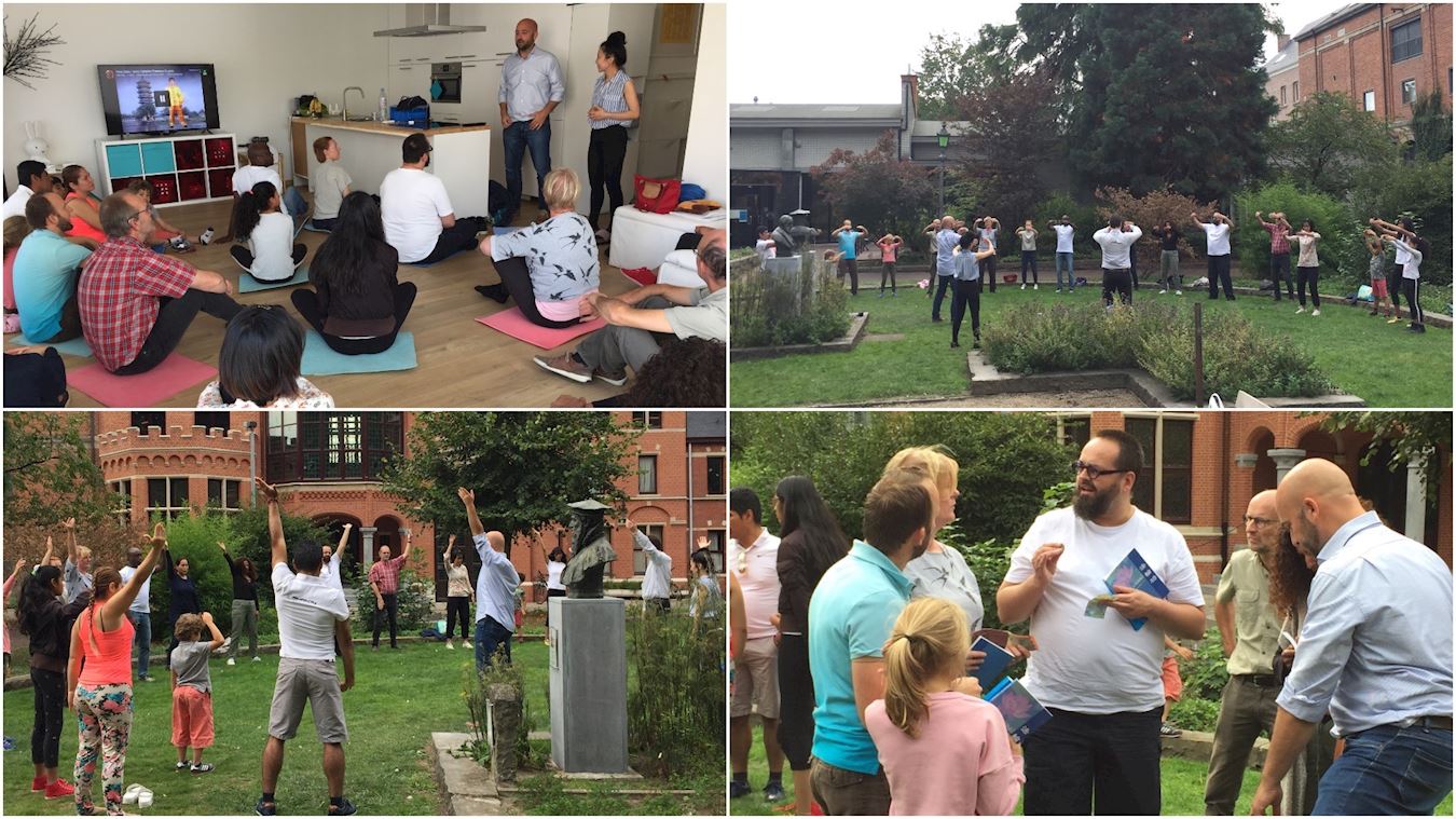 二零一八年九月十六日,圣-尼格拉斯市新炼功点一下子来了十九位新学员,其中有夫妻同来的,有带家庭成员来的。大家静静地听法轮功学员马提亚斯(Mathias)对法轮大法的介绍。
