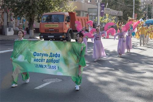 【明慧网二零一八年九月二日】二零一八年八月二十五日,在俄罗斯卡鲁加市(Kaluga)举办了盛大的城市日游行活动,法轮功学员的游行队伍受到当地市民的热烈欢迎。