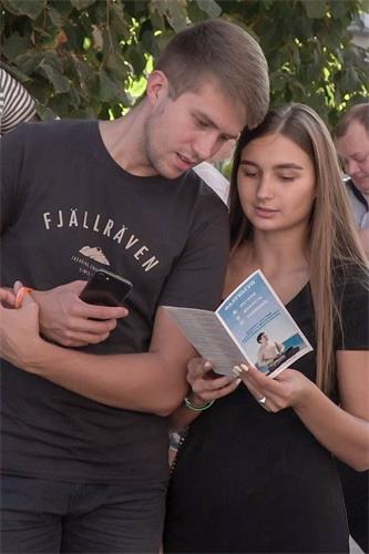 游行在到达终点站“老贸易广场”时被推向高潮,主持人响亮的向市民介绍到:“这是传统的中国修炼功法法轮大法学员的队伍”。游行过程中路两旁的观众纷纷拿出手机、照相机录像、拍照留念等。接到真相资料的观众很多当场认真阅读起来,很感兴趣,很多人问:“在哪可以学炼法轮功?”游行结束后,人们向法轮功学员表示赞叹和感谢。