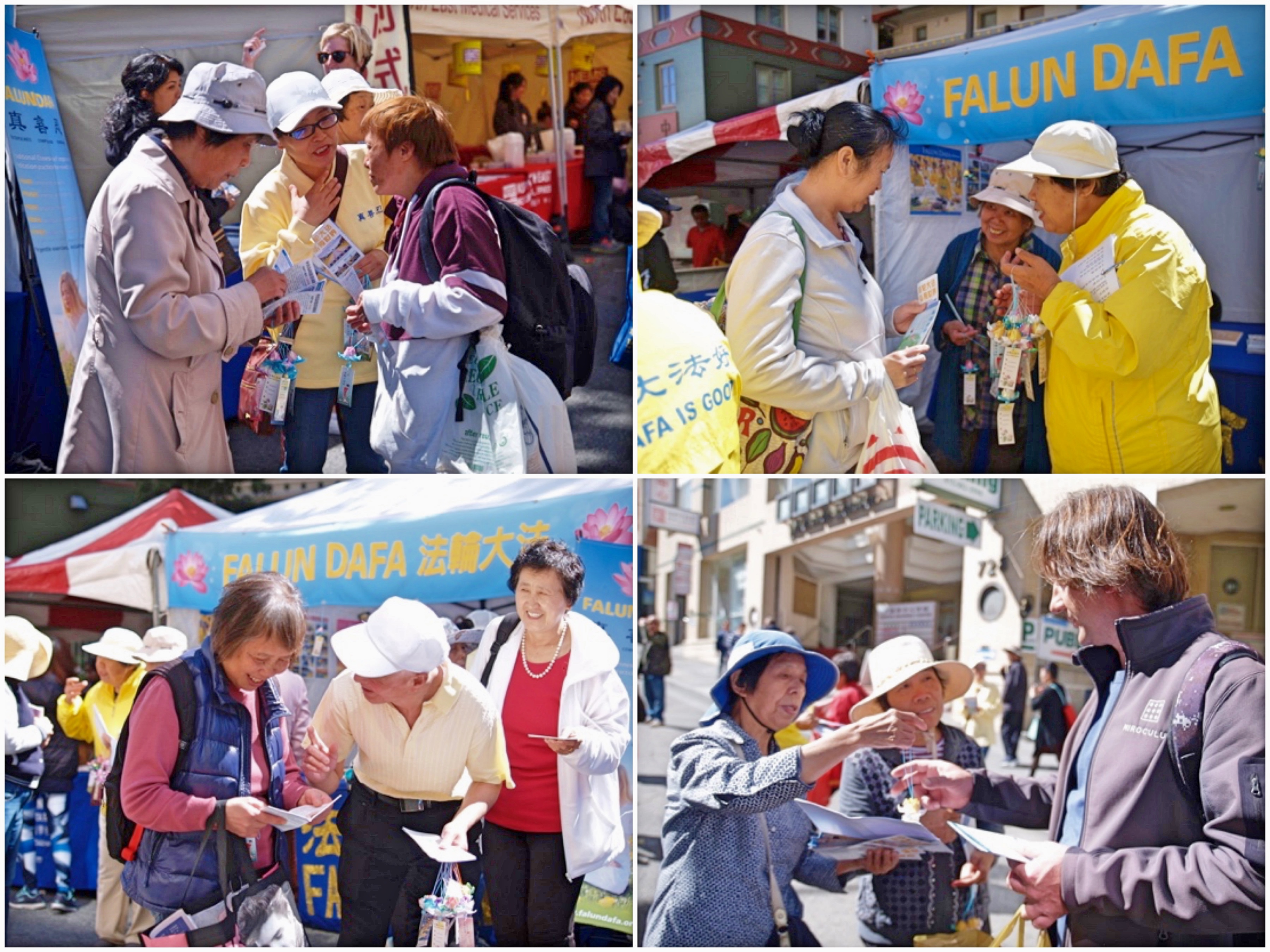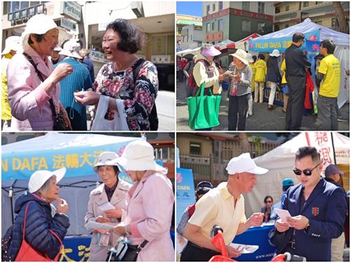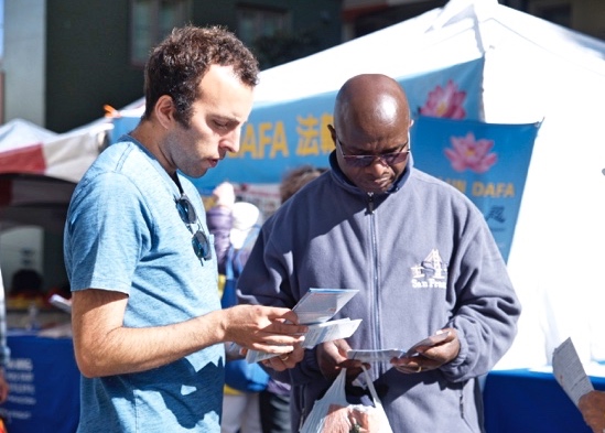 经过法轮功摊位了解真相的不仅是华人,还有西方人。他们了解到法轮功是源自中华传统文化并教人按“真、善、忍”做好人,能让人身心都受益后,说:“这真是太棒了”。得知有上亿人修炼法轮功时,他们显得很吃惊。当听到想要做好人的法轮功学员在中国大陆被迫害,甚至被中共活摘人体器官牟利后,更是十分震惊,觉得不可思议。当听说二零一六年六月美国众议院就通过《343决议案 》谴责中共活摘器官,而自己却还不知道时,纷纷表示要在自己的社交媒体上把这个消息传播出去,让更多的人知道。