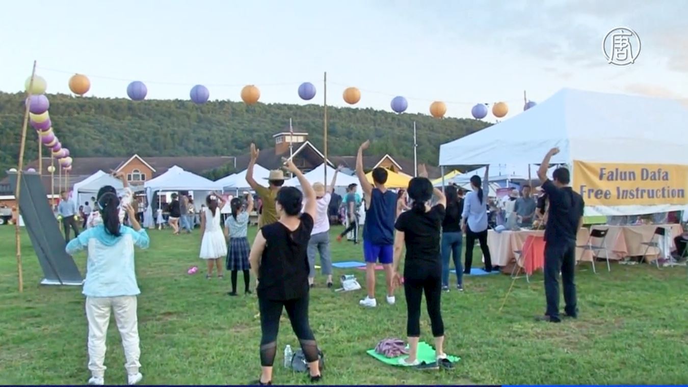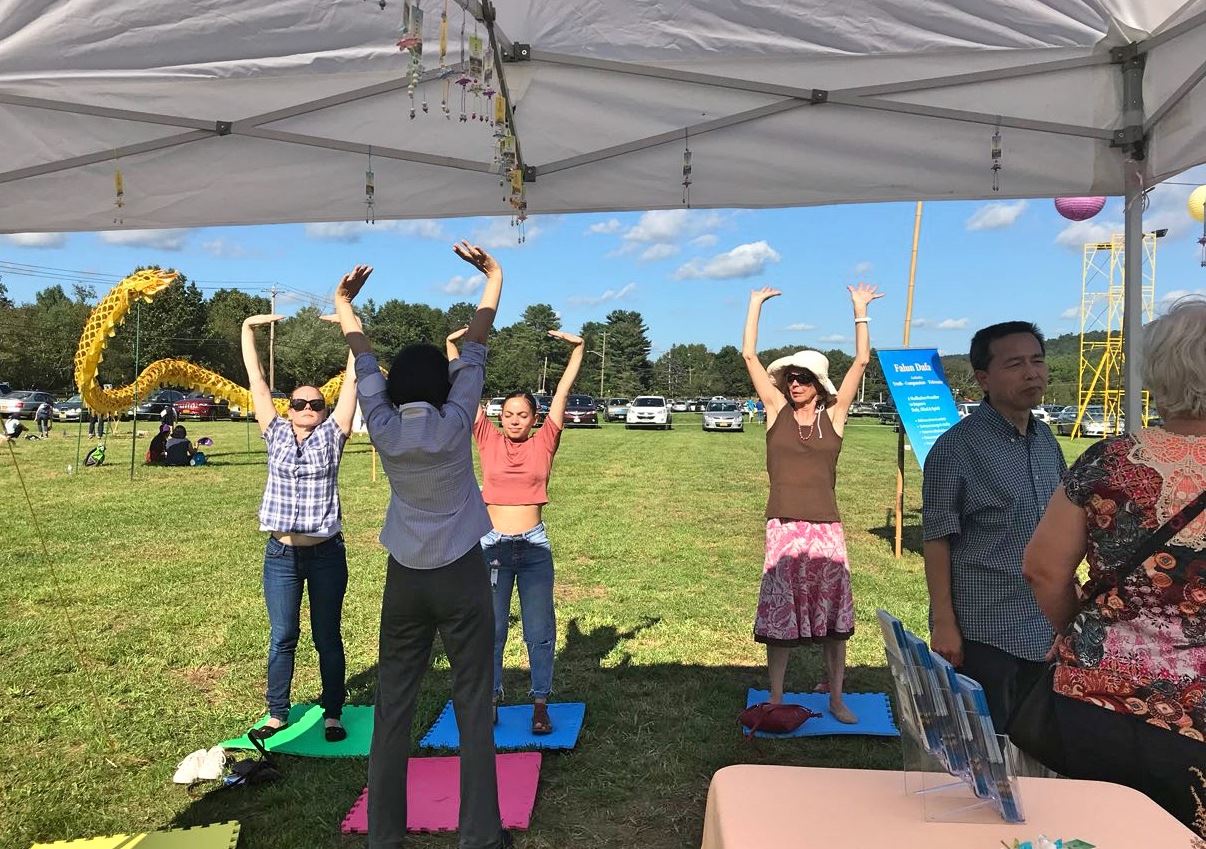 法轮功学员也参加了这个活动,不仅在舞台上表演功法,还设立了摊位义务教功。不少人表现出对修炼文化的浓厚兴趣,纷纷到展位前学炼功法动作。学员们向民众介绍法轮功的功法和对真、善、忍的信仰。