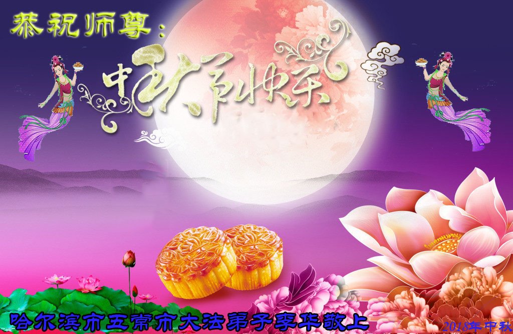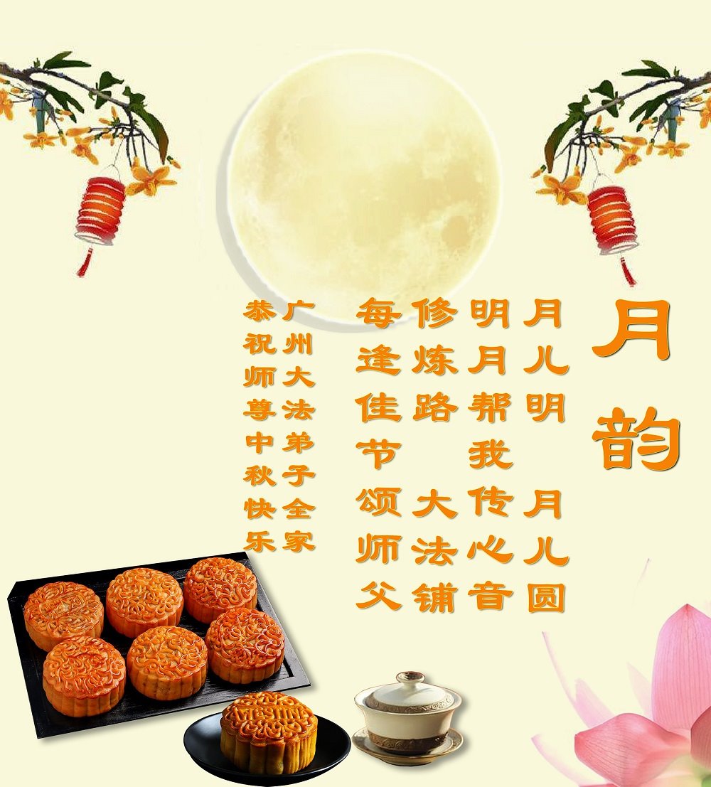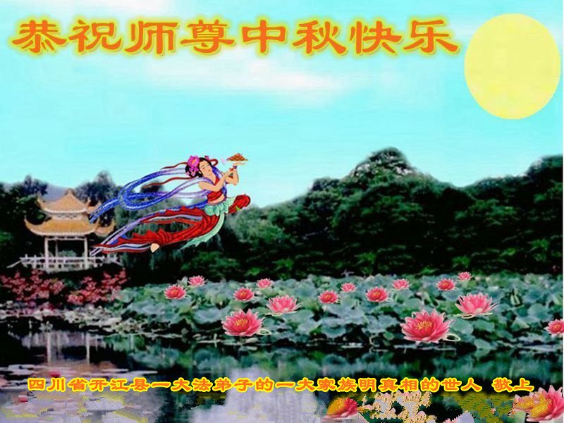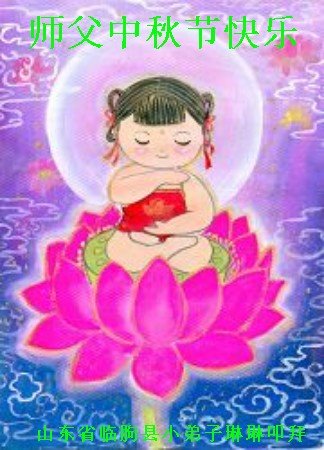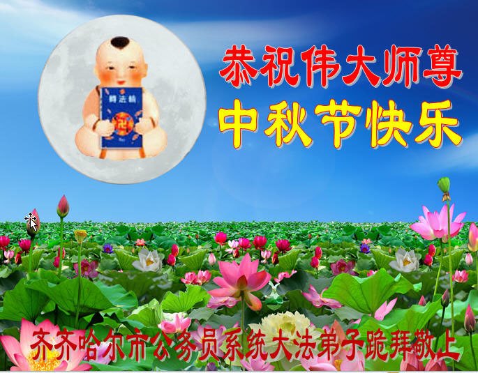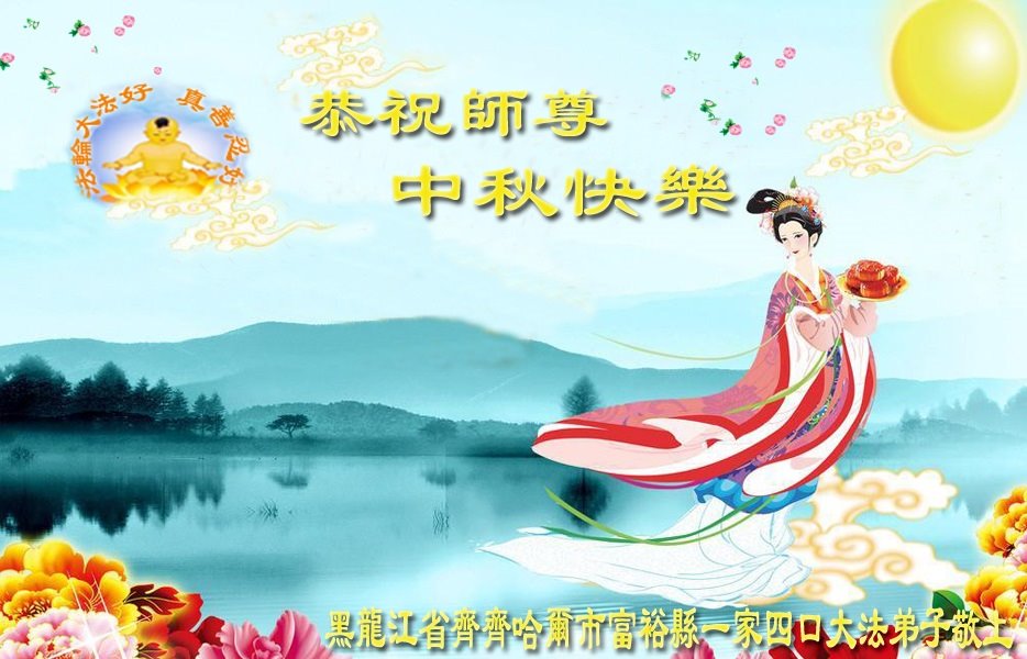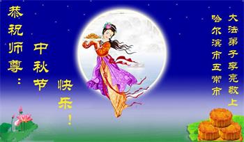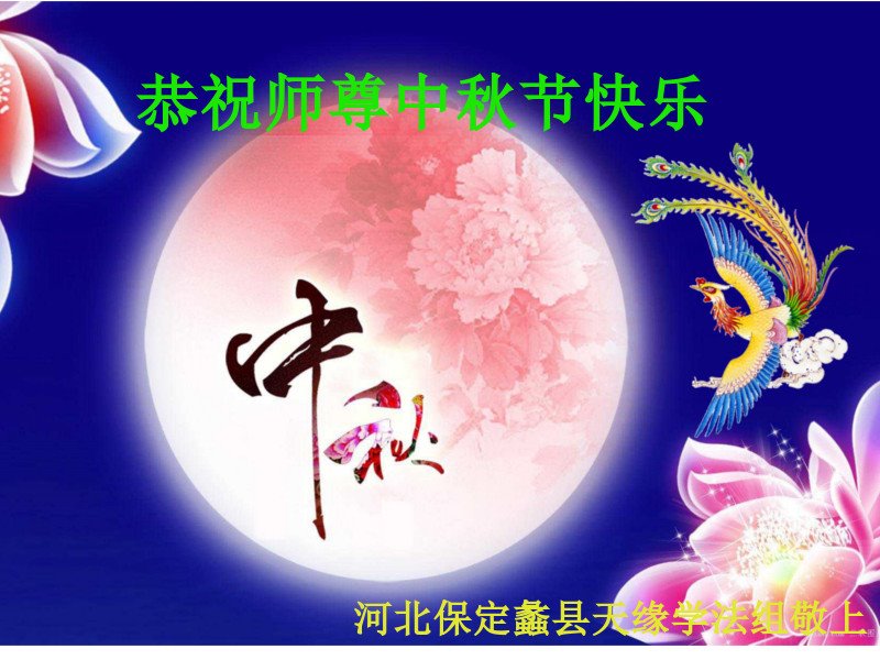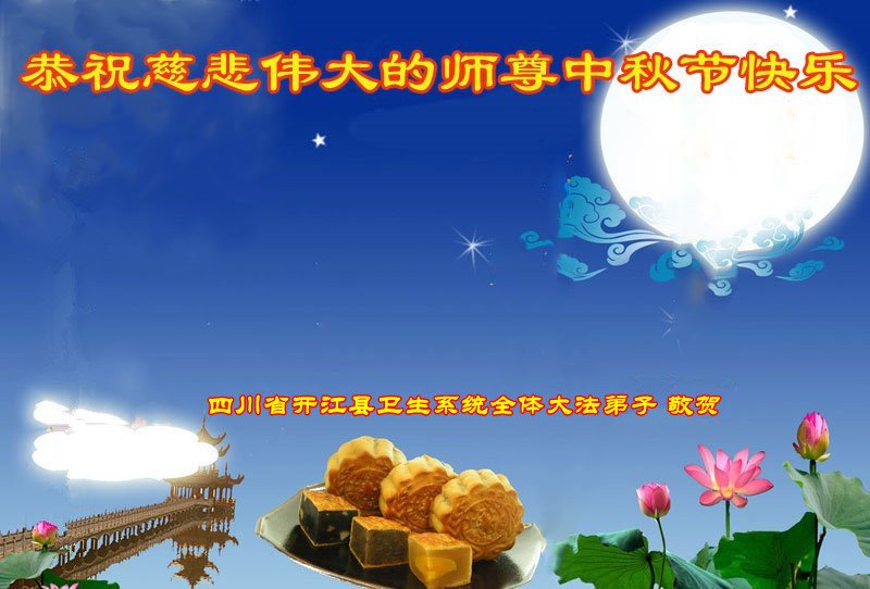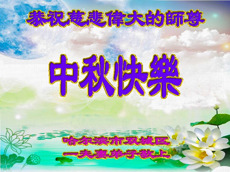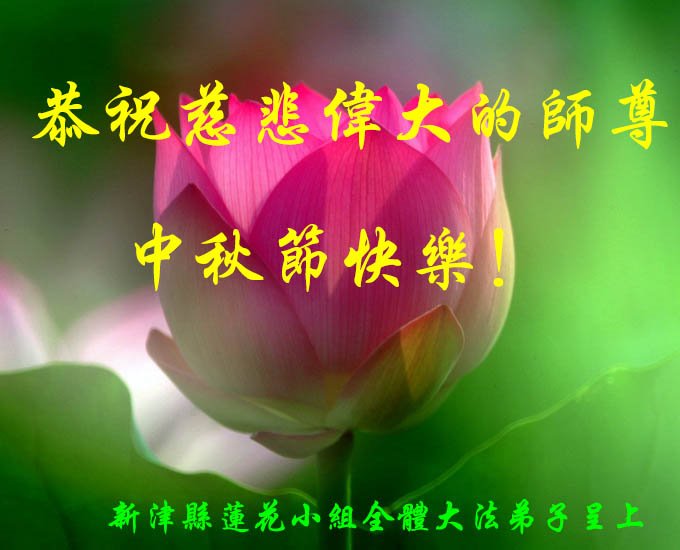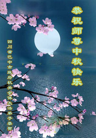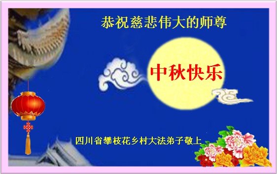 每年的八月十五,是我们中国人民传统的中秋佳节,菊桂飘香,万家灯火,皓月当空千万里,值此之际,借明月遥寄我们全家人诚挚的祝愿:恭贺大师中秋节快乐!祝您的家人及您所有的弟子中秋节快乐!大师佛恩浩荡,感谢您的慈悲救度,我们都是大法的受益者,期盼大师早日荣归故里,您是全人类的希望!再次恭贺大师中秋节快乐!