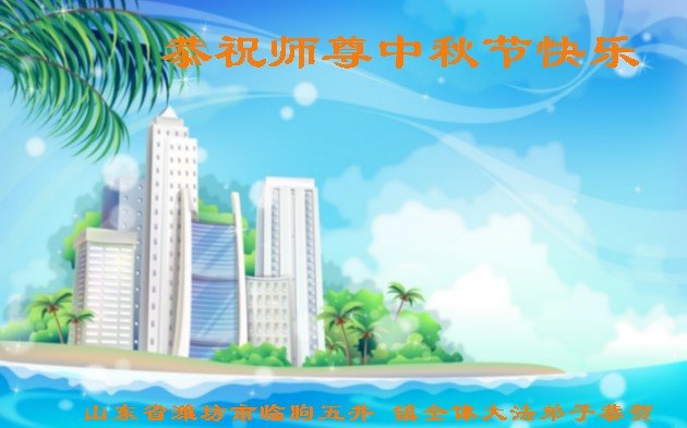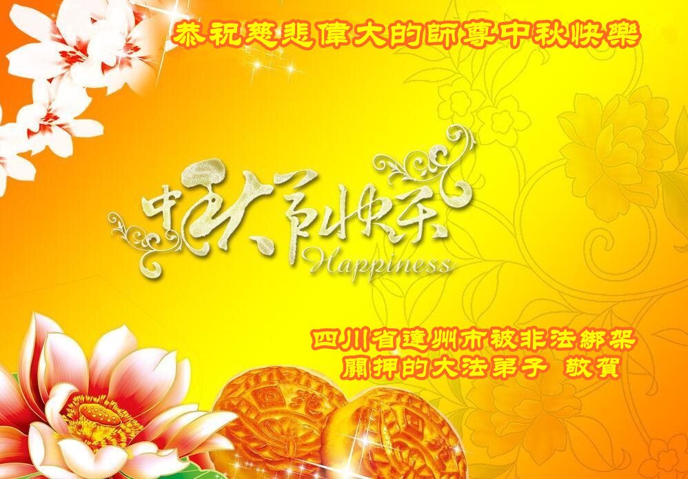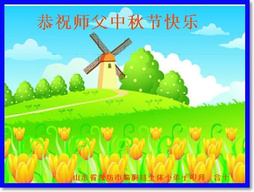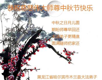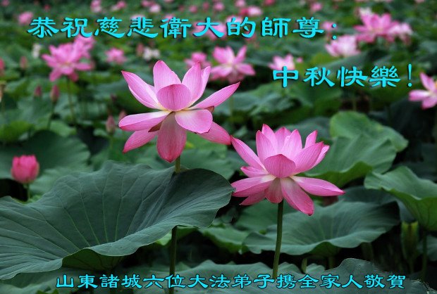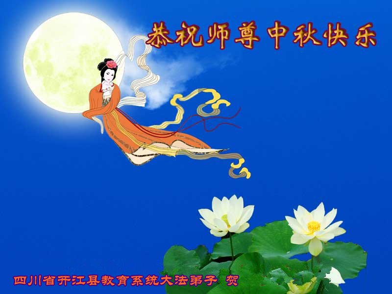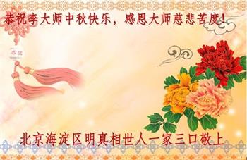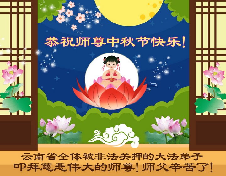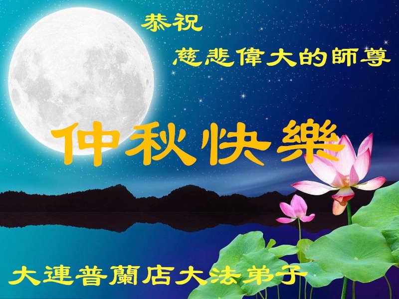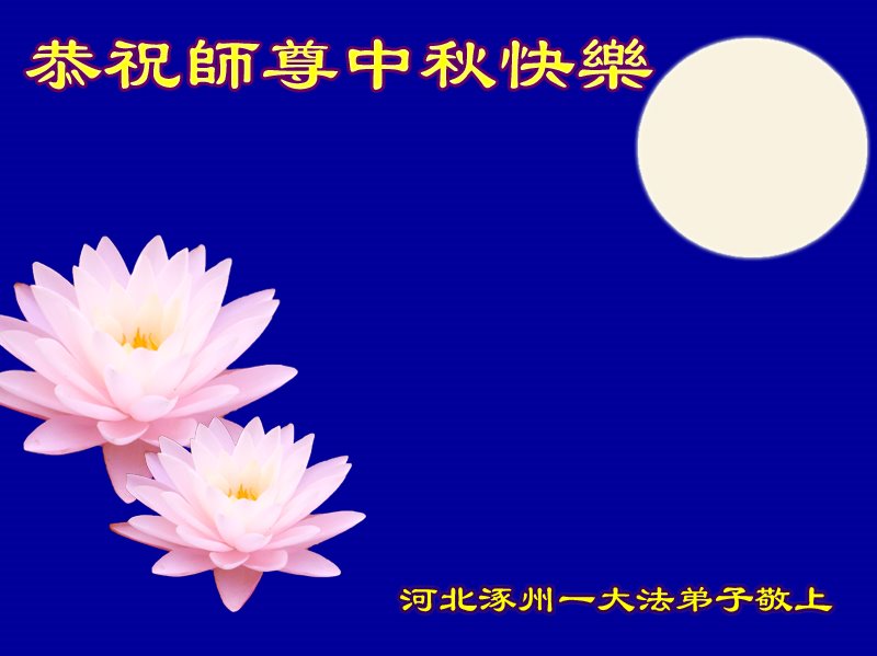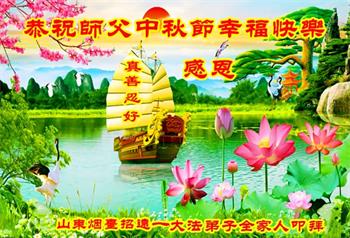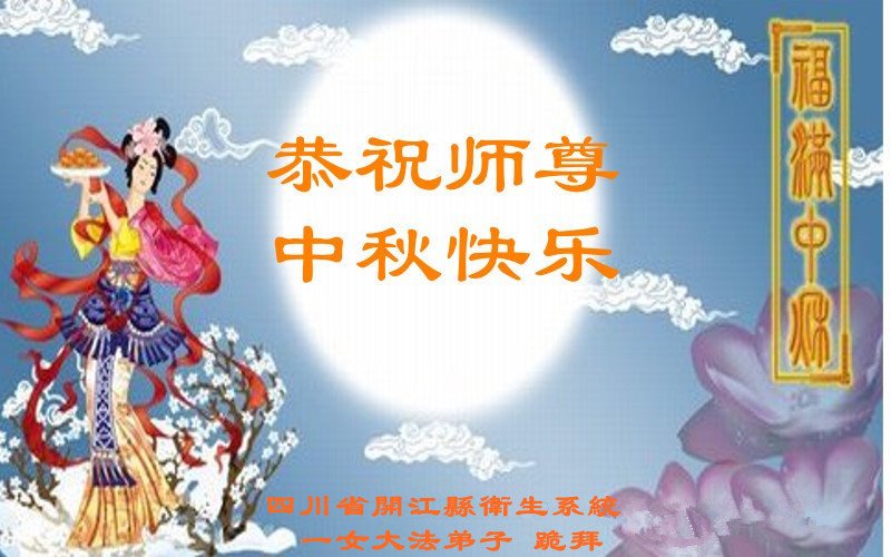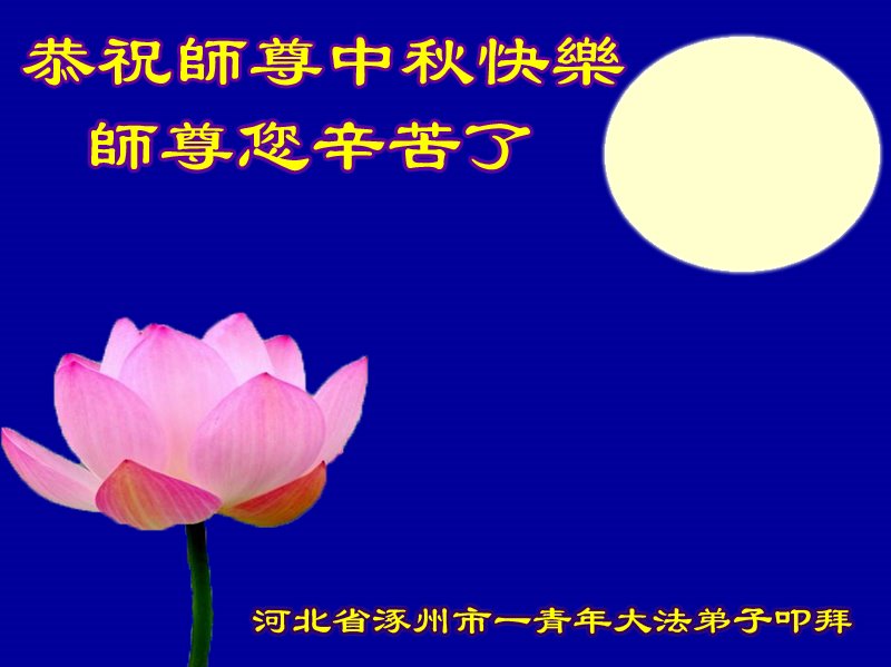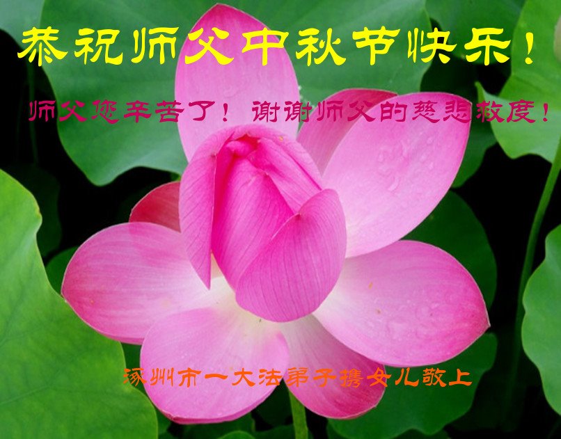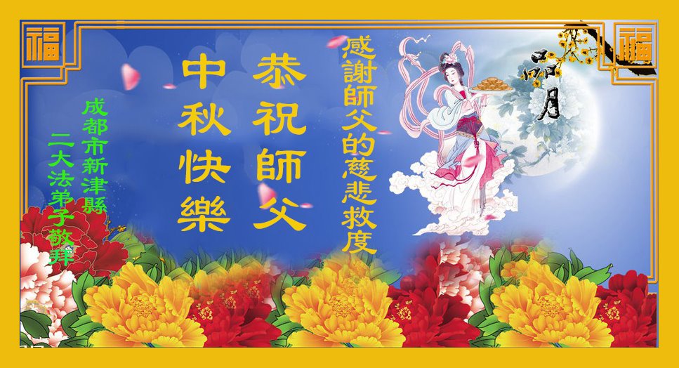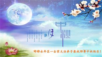 每年的八月十五,是我们中国人民传统的中秋佳节,菊桂飘香,万家灯火,皓月当空千万里,值此之际,借明月遥寄我们全家人诚挚的祝愿:恭贺大师中秋节快乐!祝您的家人及您所有的弟子中秋节快乐!大师佛恩浩荡,感谢您的慈悲救度,我们都是大法的受益者,期盼大师早日荣归故里,您是全人类的希望!再次恭贺大师中秋节快乐!