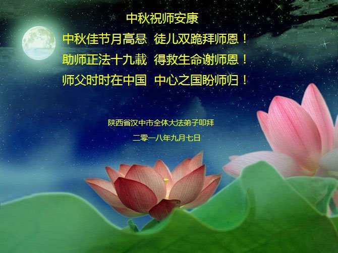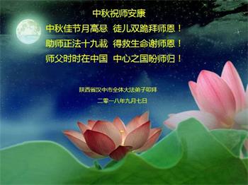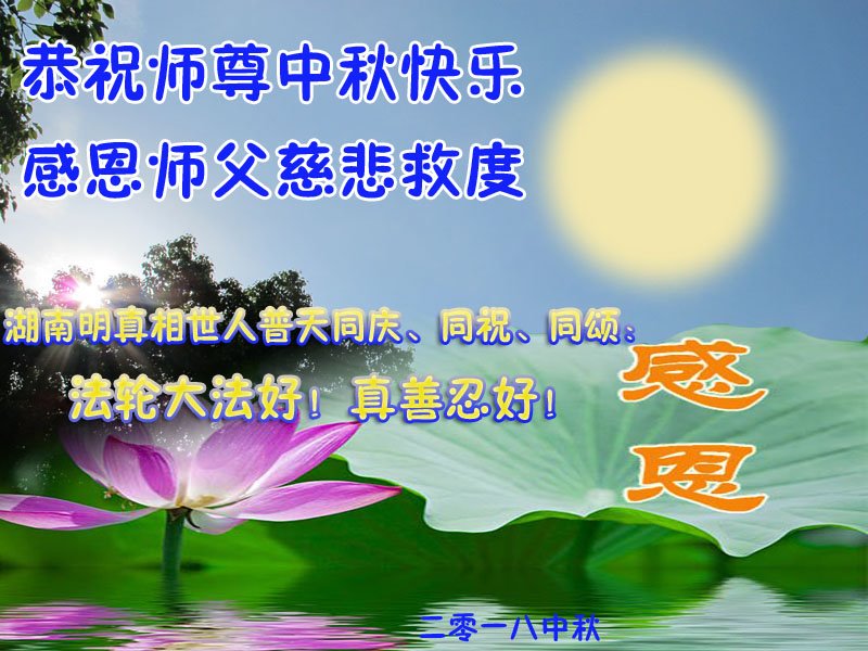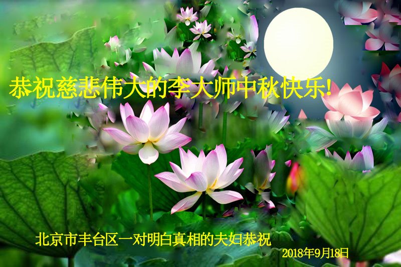 【明慧网二零一八年九月二十二日】(明慧网通讯员综合报道)中秋佳节到来之际,明白了法轮大法好的民众借明慧网给李洪志大师发来中秋问候。