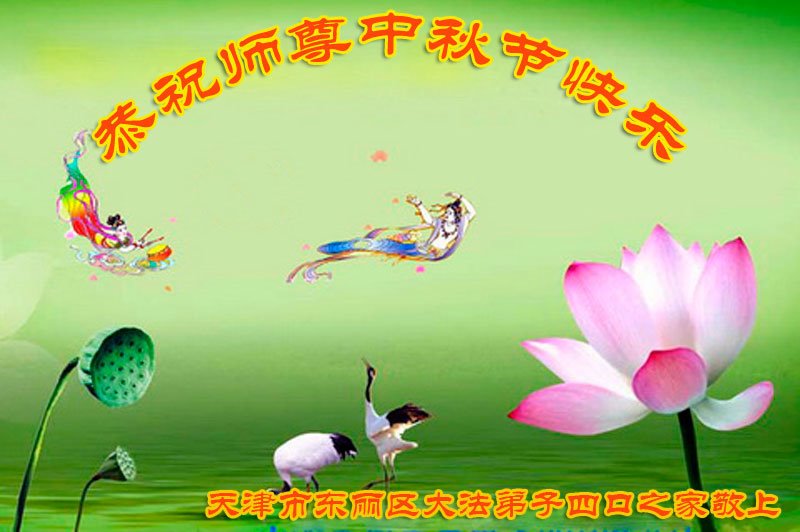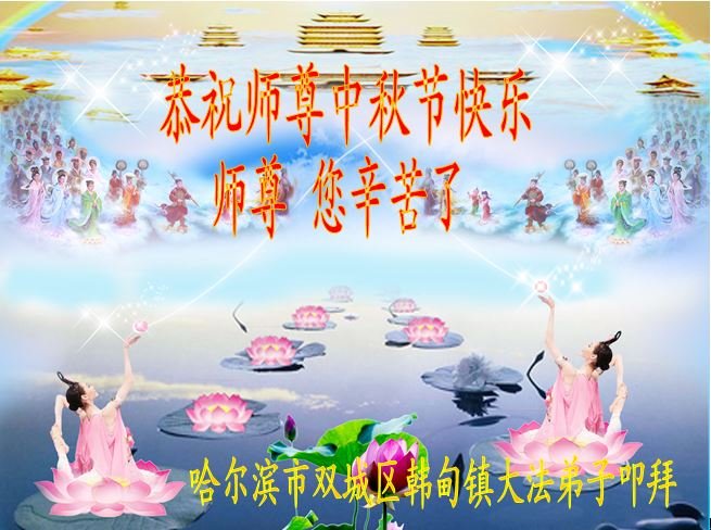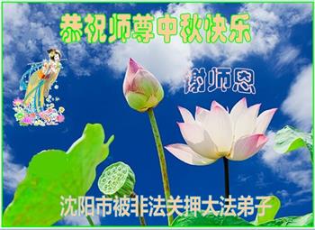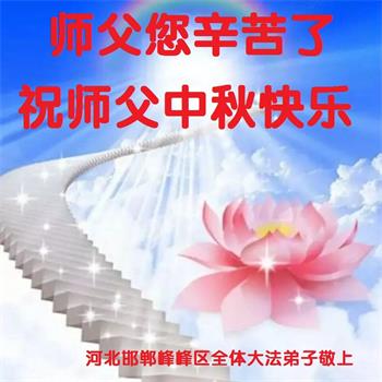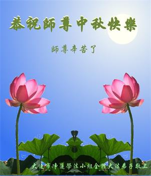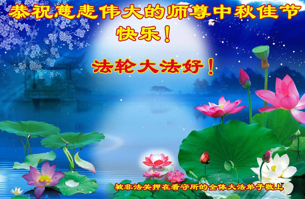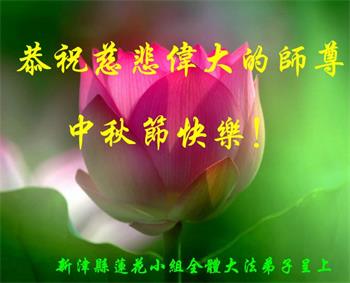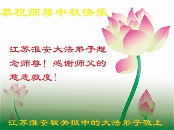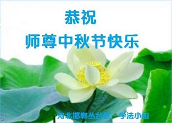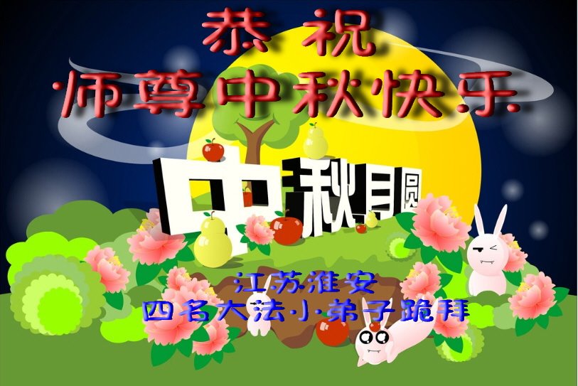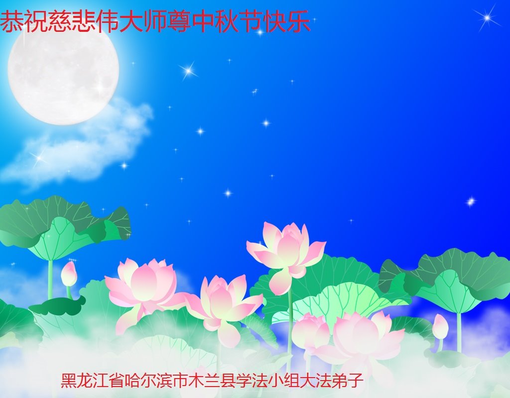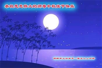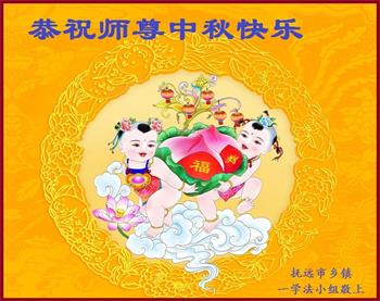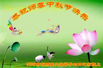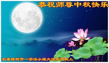 江苏徐州大法弟子恭祝师尊中秋快乐!他们说:“我们学法小组跟随师尊正法十九年,得到了师尊的无比关怀。在这中秋佳节,我们全组弟子衷心的感恩师尊,谢谢您的慈悲保护!”