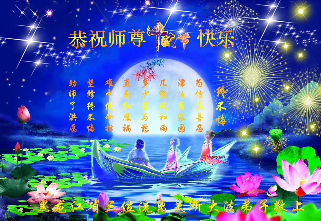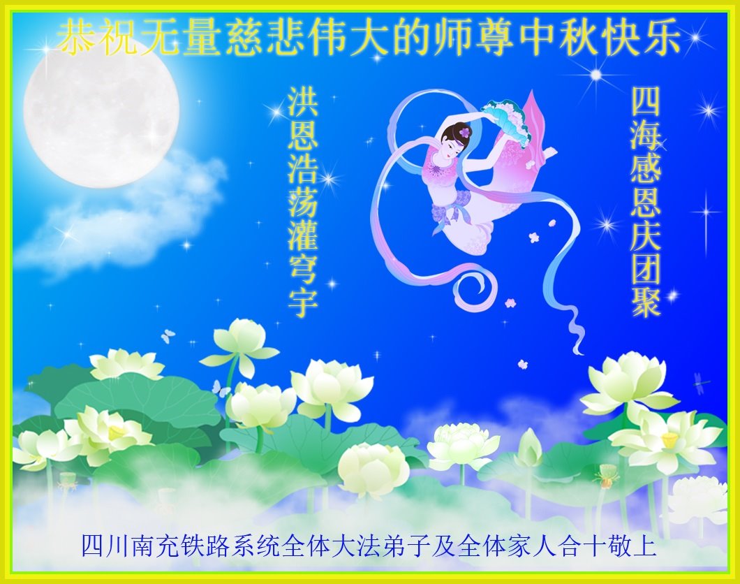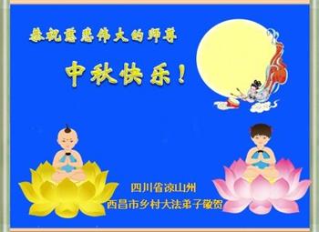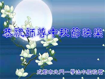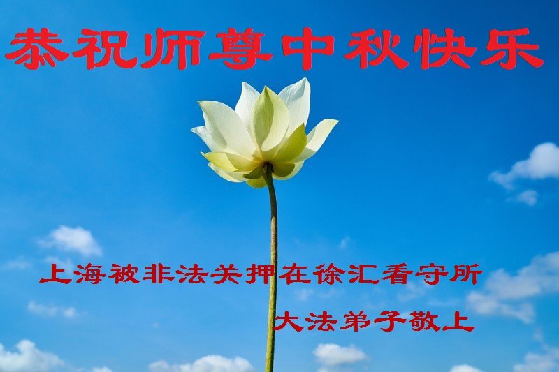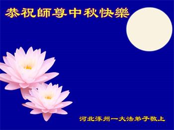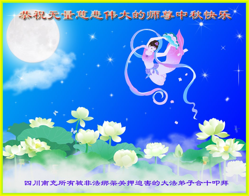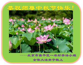 江苏徐州大法弟子恭祝师尊中秋快乐!他们说:“我们学法小组跟随师尊正法十九年,得到了师尊的无比关怀。在这中秋佳节,我们全组弟子衷心的感恩师尊,谢谢您的慈悲保护!”