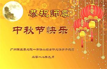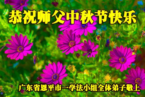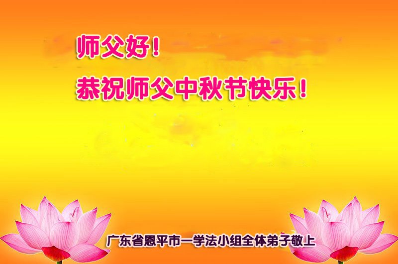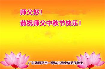 广东政法系统大法弟子全家五口恭祝李洪志师尊中秋快乐!叩谢师尊对弟子的慈悲救度与时时看护!祝师尊身体健康!弟子要加强正念,修好自己,做好三件事,尽力做到能为师父分忧。