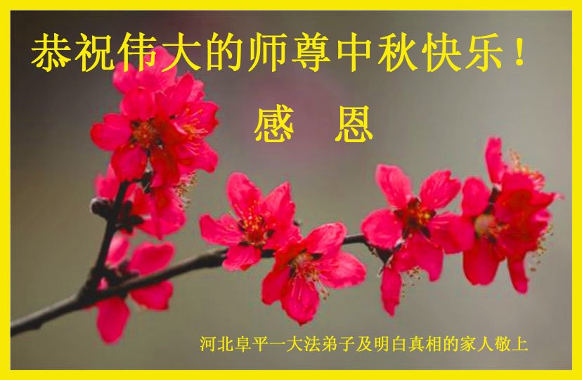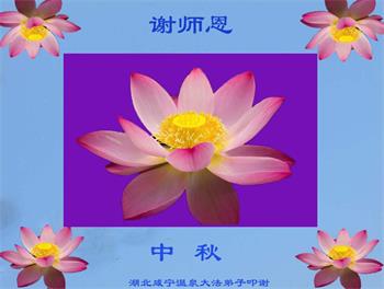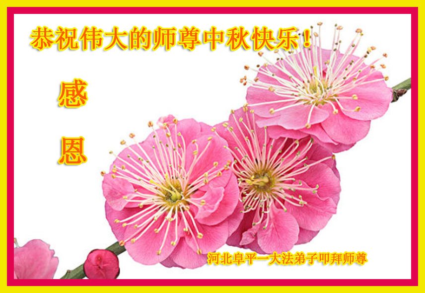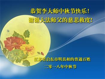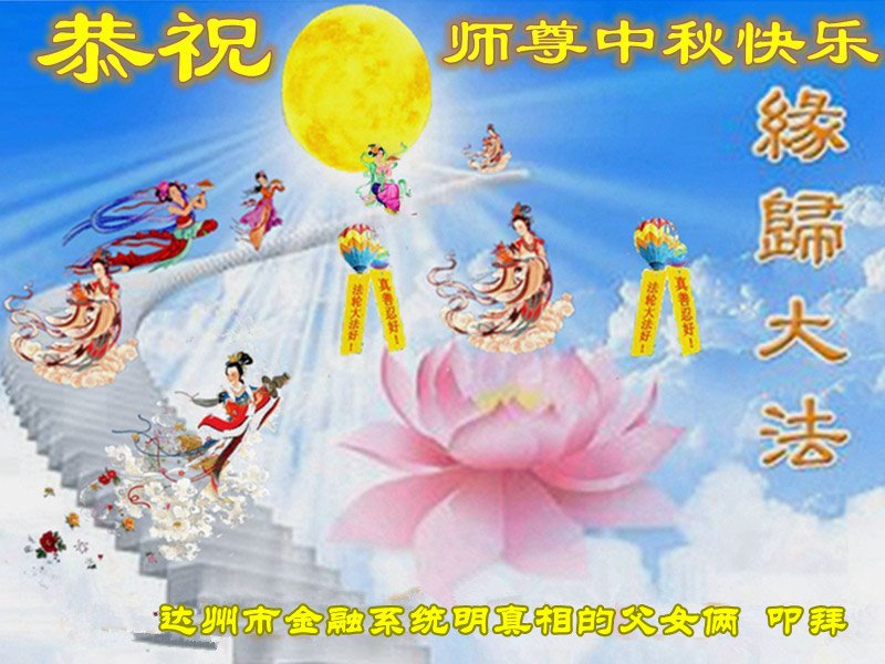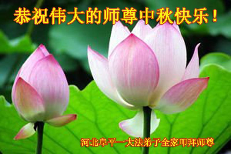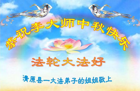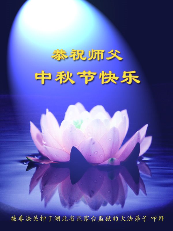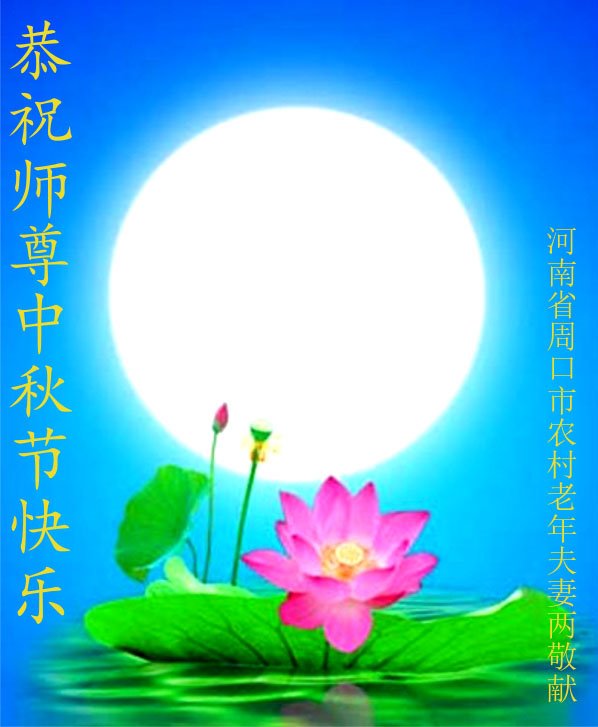 我原是某单位的一名处级干部,看不惯共产邪*党-腐败的乱象,常常感到人生迷茫。突然有一天接到了一本明慧期刊读物。原来睡眠不好,每天都靠吃安眠药睡眠。明白真相后,我就天天念:法轮大法好!真善忍好!每天睡觉之前我就一遍一遍的念这九个字,一直念到把脑子装满,就睡着了。是法轮大法让我看到了生命的希望。在中秋到来之际,我们夫妇非常感谢您!谢谢李大师!恭祝慈悲伟大的李大师中秋快乐!