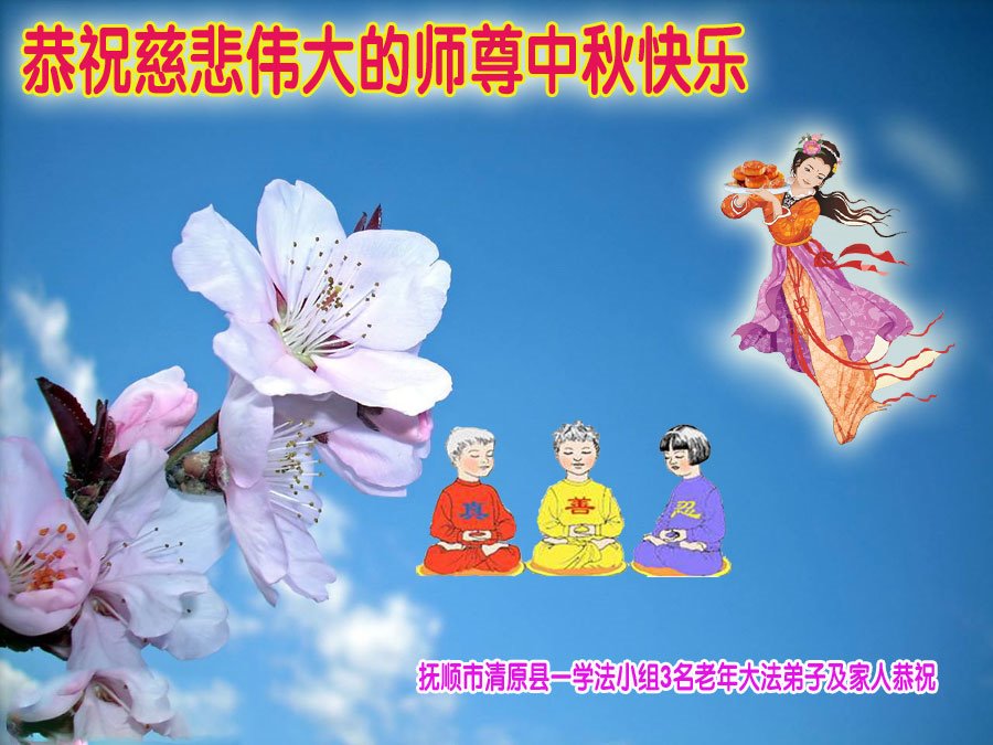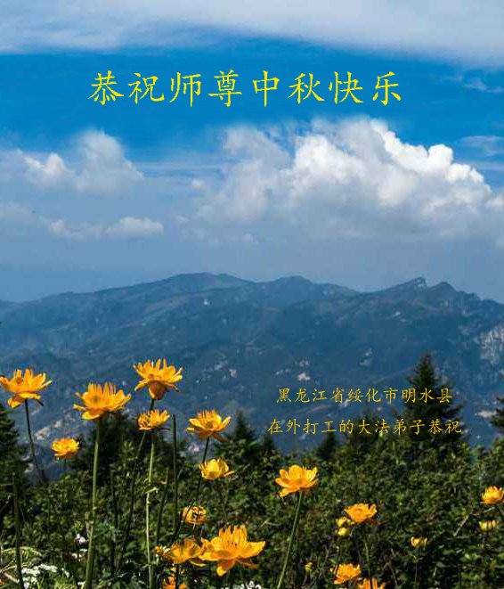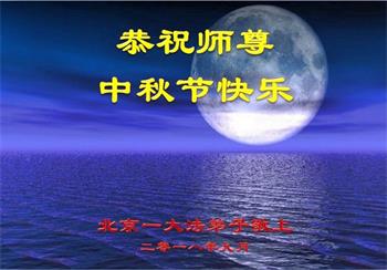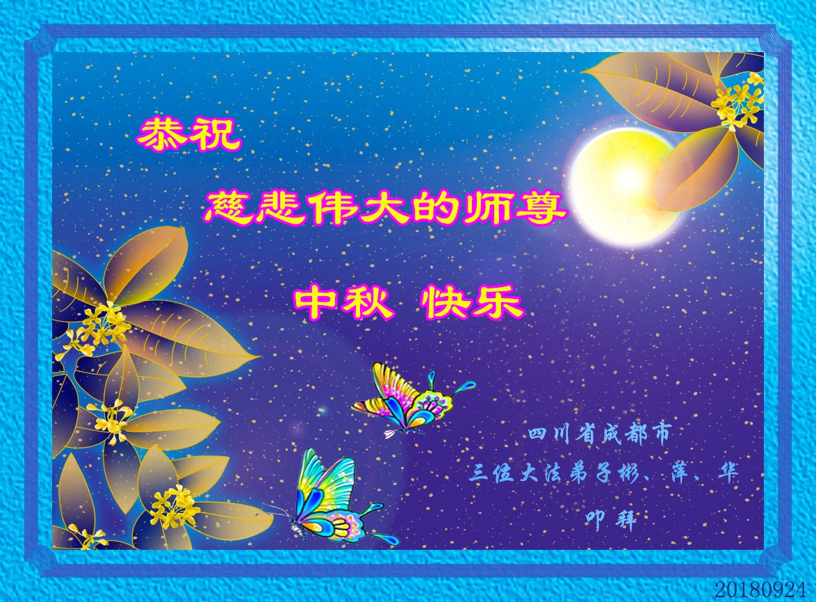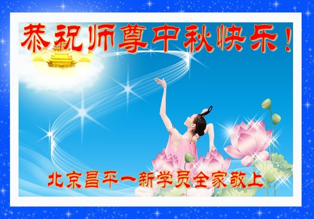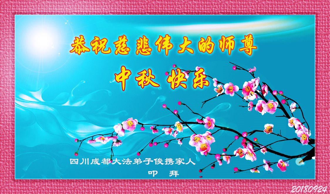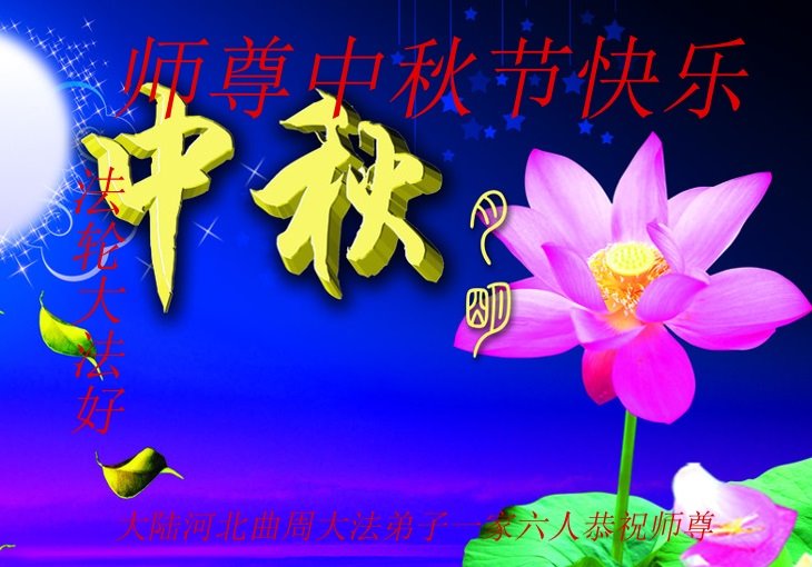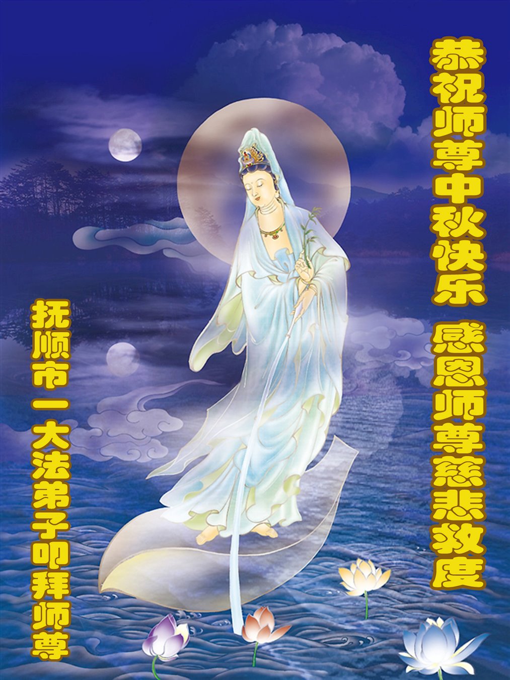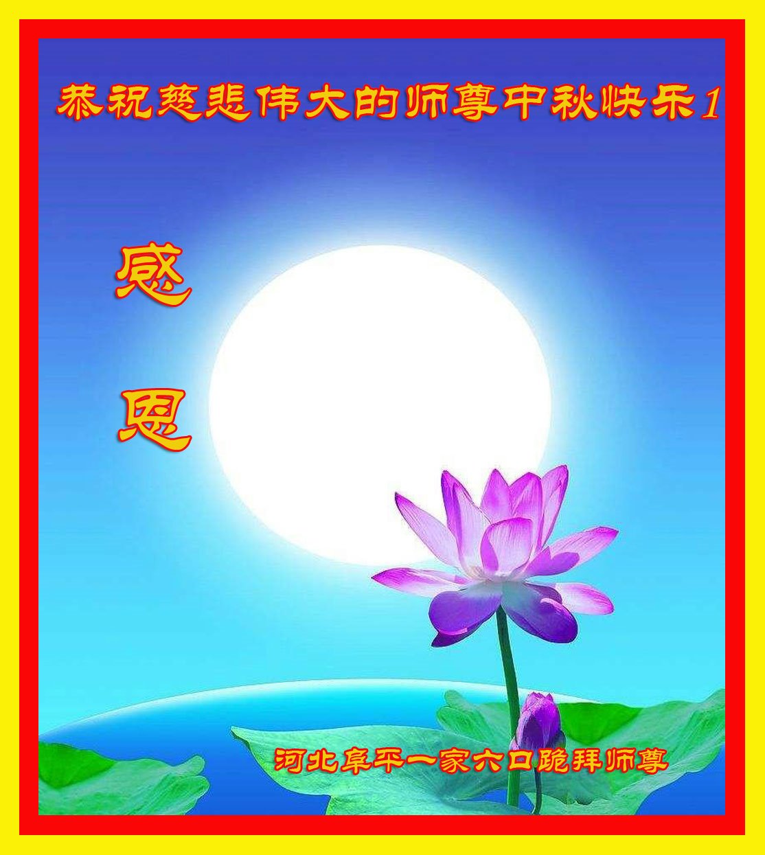 师尊您好!师尊辛苦了!在这中秋佳节来临之际,弟子非常想念师尊,弟子心怀无限的感恩和崇敬恭祝师尊中秋快乐!在弟子修炼路上每前進一步,都浸透了师尊的无量慈悲和巨大付出,弟子叩谢师尊佛恩浩荡! 我们要学好法、学懂法,修好自己,在提高心性上多下功夫,认真做好三件事,这是我们的责任,我们一定会做得更好,因为我们有伟大的师父,有伟大的法!