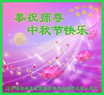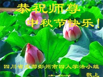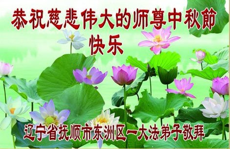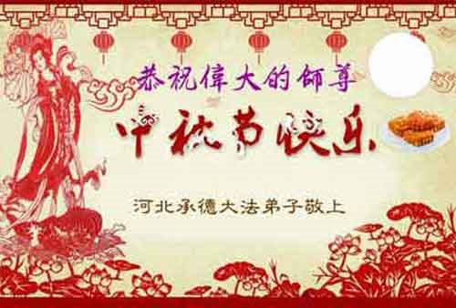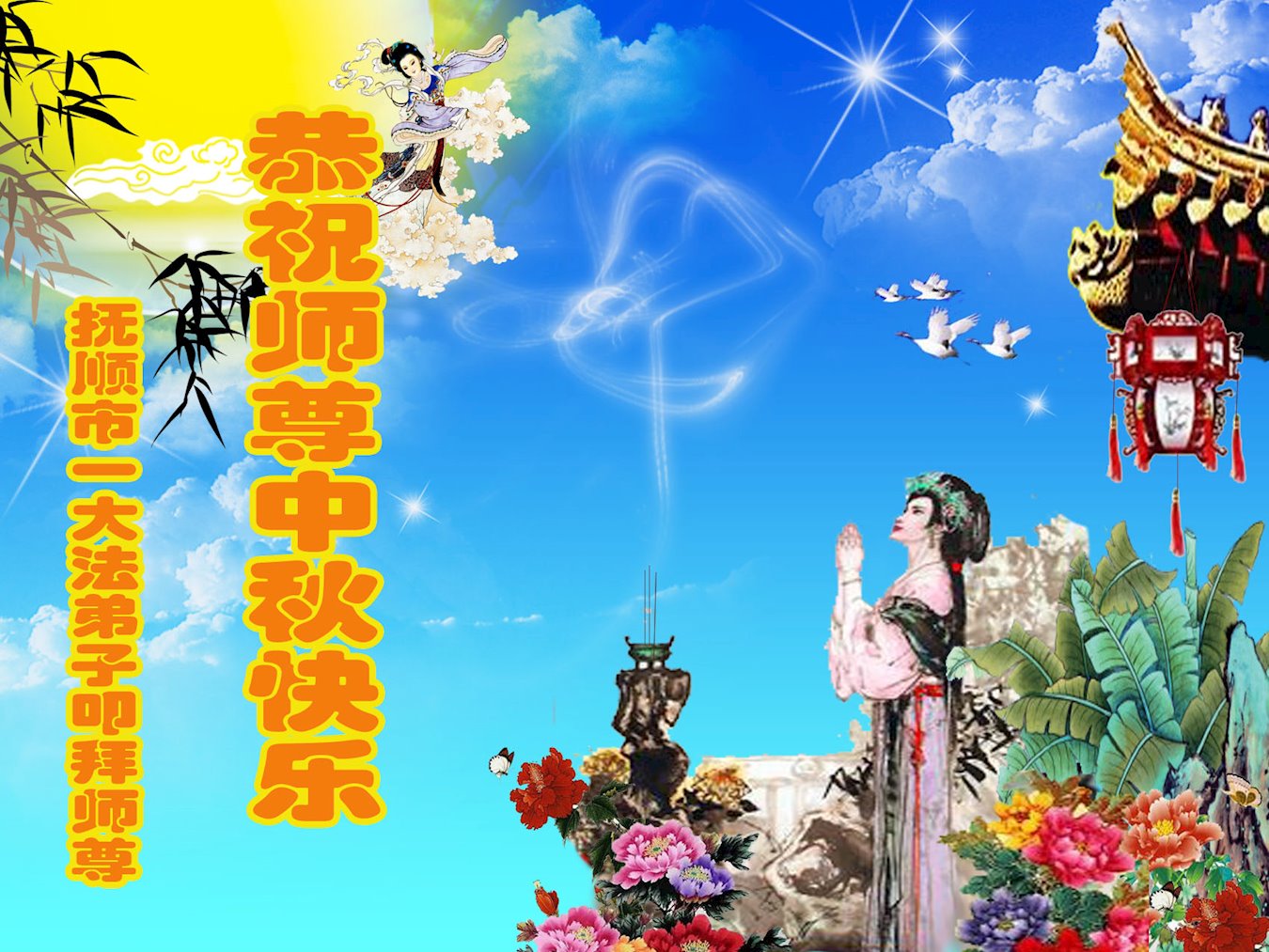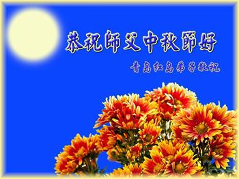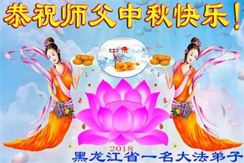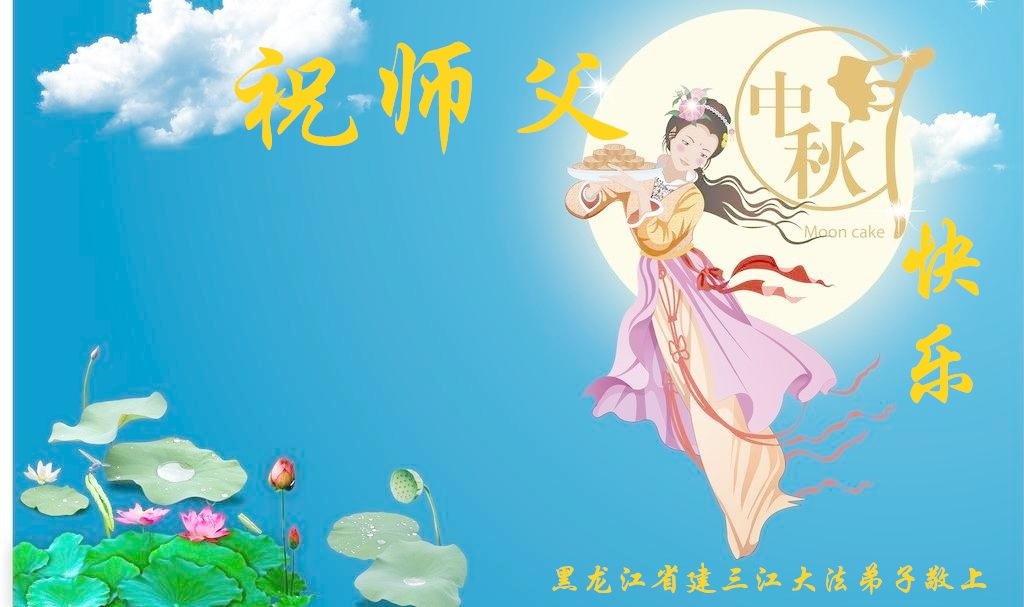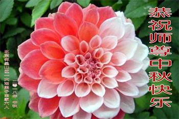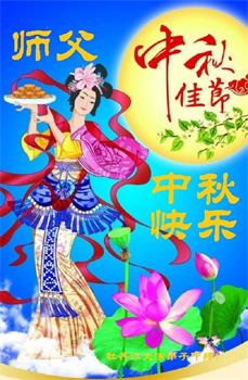 中秋佳节到来了,弟子恭贺师父佳节快乐!中秋是圆满的日子,弟子深深知道师父给予我们的法轮大法,能使我们修炼圆满。一些同修在大法中修炼勇猛精進,修成了,成为真正的大法徒,他们无愧师父的慈悲救度, 无愧于他们世界众生的期盼,他们的生命已经走向永恒。弟子惭愧,在目前师父的巨大承受下延长的修炼时间里,还不知道很珍惜,至今还有很多执着没有放下,没有修去,弟子希望能在今后的修炼中严格按法轮大法的要求去修炼,走向圆满。弟子无限感激师父的洪大慈悲救度之恩,在中秋佳节叩谢师父!,弟子给师父深深的敬合十礼!