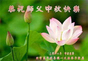 师父洪大的慈悲、为众生艰辛的付出,倾尽人类所有的语言都无法表达。值此中秋佳节之际,我和我的女儿——昔日的小同修恭祝慈悲伟大的师尊中秋快乐!并叩谢师恩!我女儿于一九九七年不到十岁时就随我到炼功点炼功,参加过四、二五。一九九九年七.二零法轮功被迫害的前一天,我们参加了最后一次集体炼功。那天,我对女儿说,咱们一起回到天上去好吗?女儿说好。就这一字的应诺,师父就一直在管着她。法轮功被迫害后,我怕未成年的孩子应付不了残酷的迫害,就没带她继续修炼。但师父始终没有放弃她。前几年,师父安排她来到海外修炼,然而由于某些原因,她没能走入修炼。最近师父再次为她做了安排,她终于走進了修炼。慈悲伟大的师父不想落下每一个昔日同修和当年的小弟子,希望还没有走回修炼的同修,不枉师父的慈悲苦度,赶快回到大法中来吧。再次叩谢师恩!合十