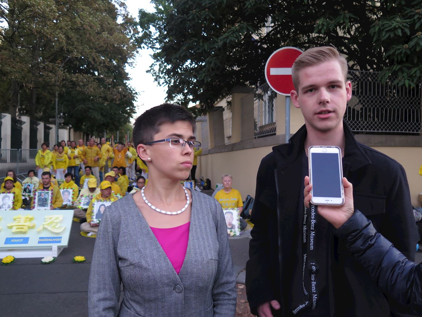 奔驰公司机械师贝赫·恺斯(Behar Kaciu)和牙医助理安吉丽娜·多罗霍娃(Angelina Dorokhova)在布拉格旅游,路过活动现场时,他们被这里的庄严气氛吸引。