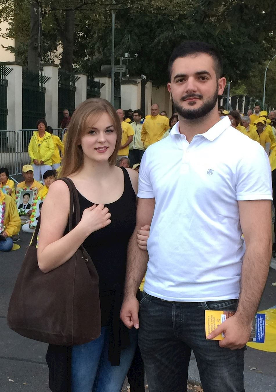 ![]() 图3:奔驰公司机械师贝赫·恺斯(Behar Kaciu)和牙医助理安吉丽娜·多罗霍娃(Angelina Dorokhova)认为法轮功学员的努力将会给后代带来福祉。 |