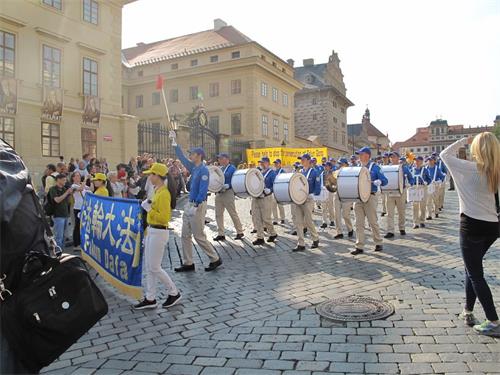 ![]() 图6~8:在布拉格老城区,法轮功游行队伍在人海里穿行,来自世界各地的游客夹道观看,汇集着天国乐团演奏、炼功音乐、腰鼓队、鲜明醒目的真相横幅也吸引了沿街两边建筑和店面里的人群 |