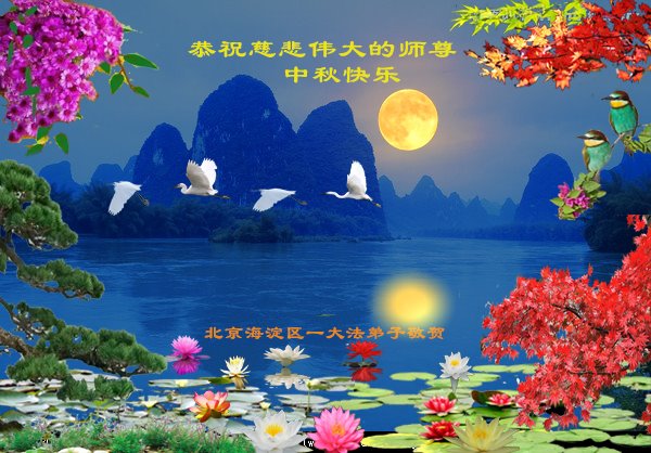 北京海淀区一大法弟子恭祝慈悲伟大的师尊中秋快乐!他在贺词中说:大法洪传,世人心渐明,邪恶终有灭尽时,普天同庆的日子终会到来,我作为一名得法多年的老弟子,深深的沐浴在大法的洪恩中,身心得到净化,家人受益匪浅,我在此向伟大的师尊恭祝中秋佳节节日快乐!弟子无论面临怎样的魔难,弟子修炼的心都坚如磐石,永远不会改变,终有一日,弟子会回到自己真正的家园,不负师恩。