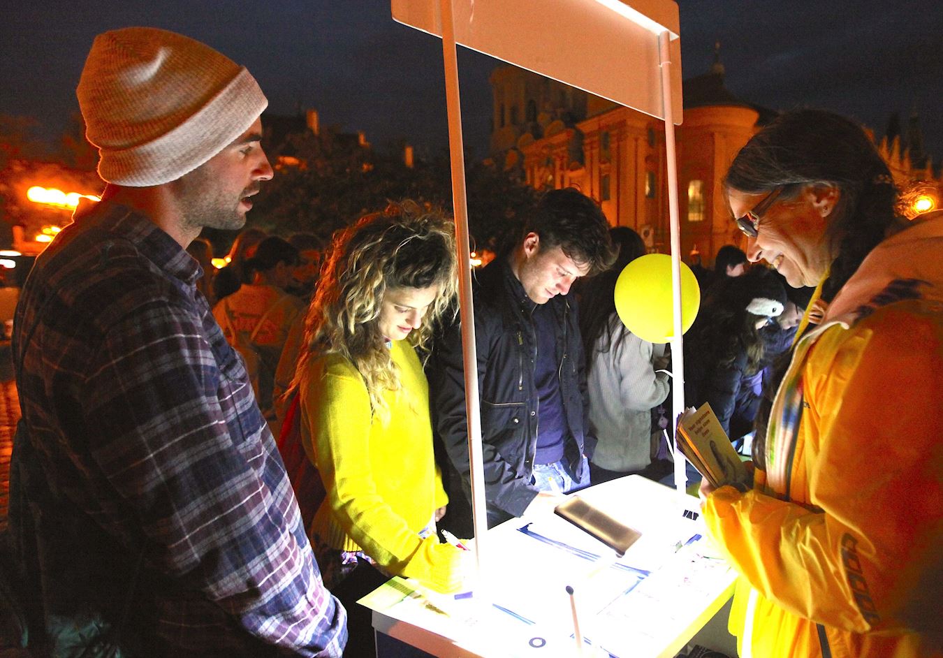 由于所要资料的人太多,当活动快接近尾声时,捷克法轮功学员为几天的大型活动准备的所有捷克文的资料全部告罄,当地民众只好索要其它包括英文、德文在内的其他语言的相关资料。