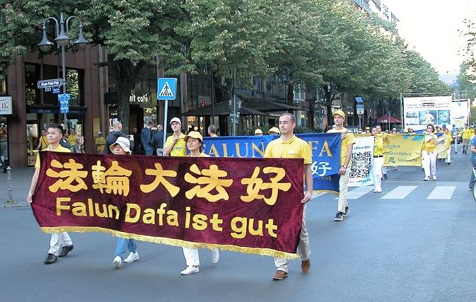 游行队伍由天国乐团,悼念方阵和真相横幅方阵组成。游行队伍从法兰克福繁华的商业步行街出发,经过著名的旧市政厅广场,法兰克福歌剧院直至市中心的火车站。学员们在市中心的两个真相点同时向民众征集支持反迫害的签名,并现场演示五套功法。本次活动吸引了很多民众的关注,许多当地居民向学员了解哪里可以学炼法轮功。