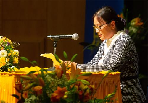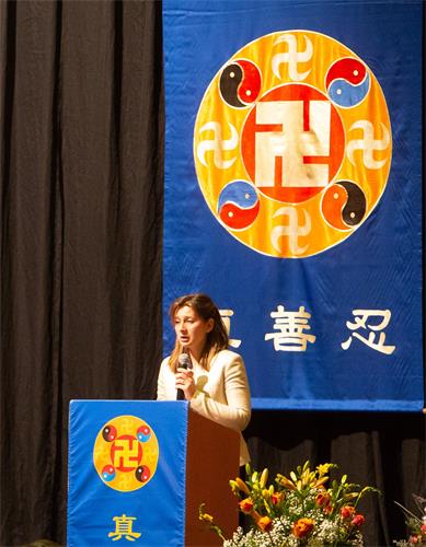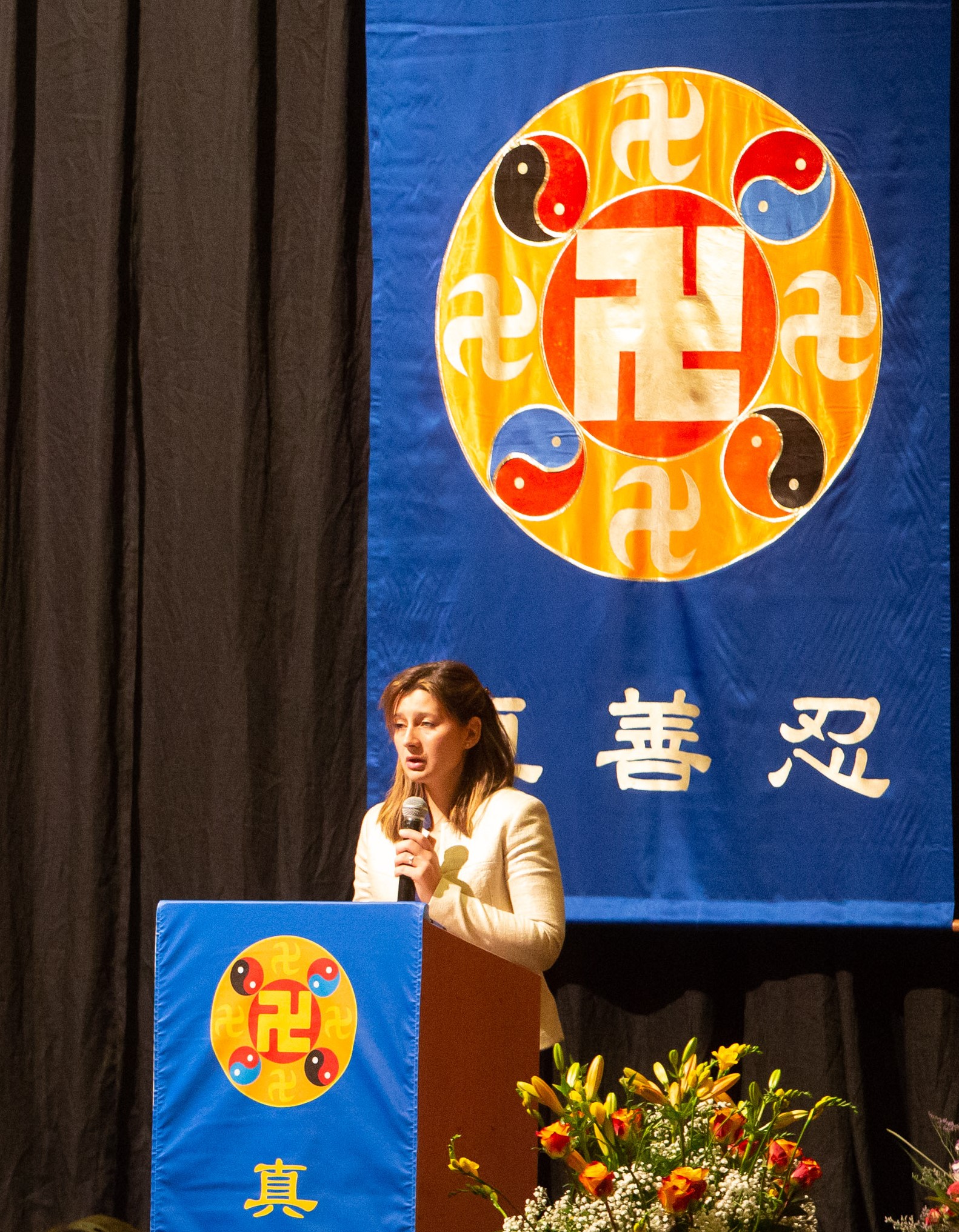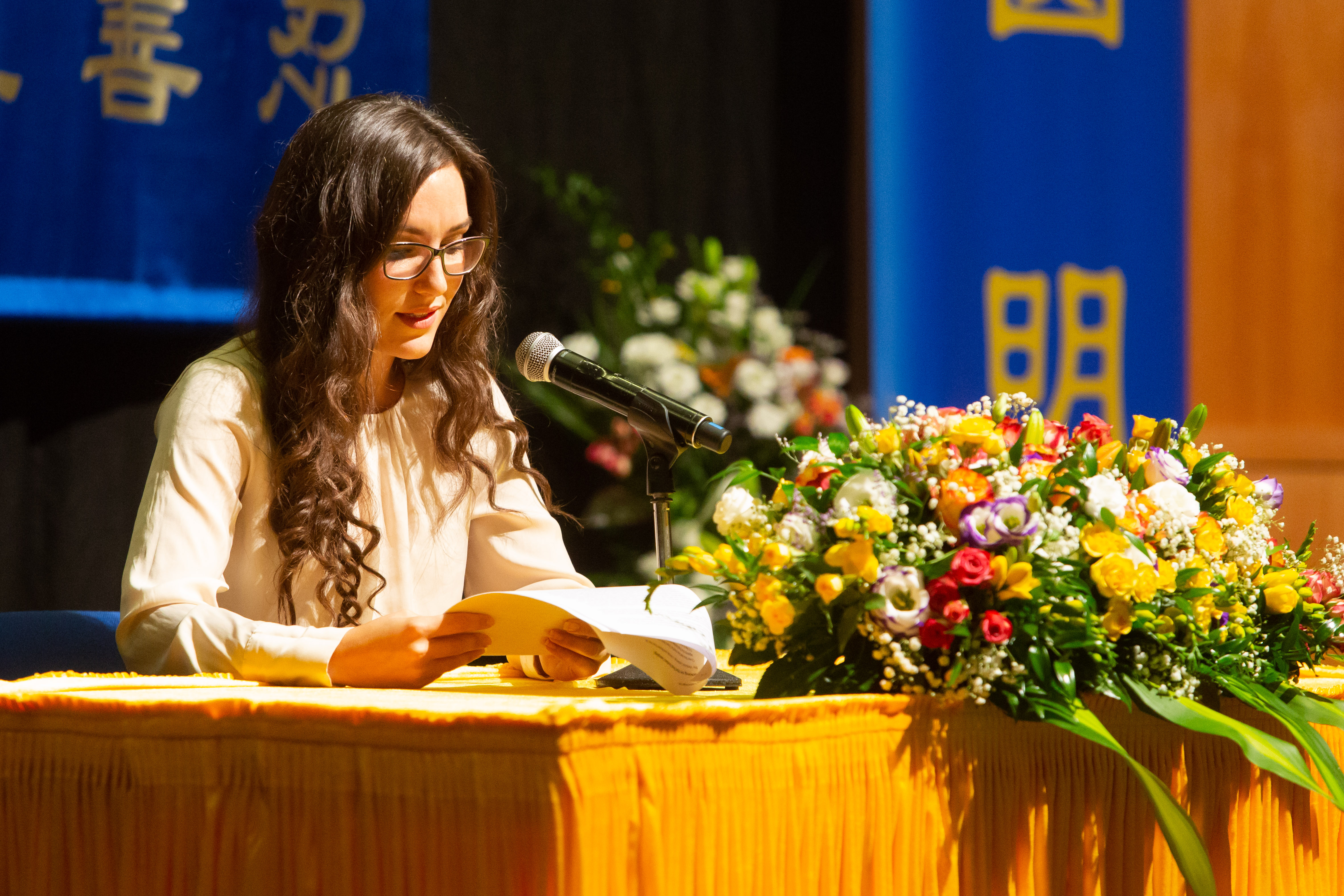 娜塔莉(Natalia)在法会上分享了自己向内找和对背诵《转法轮》的理解。