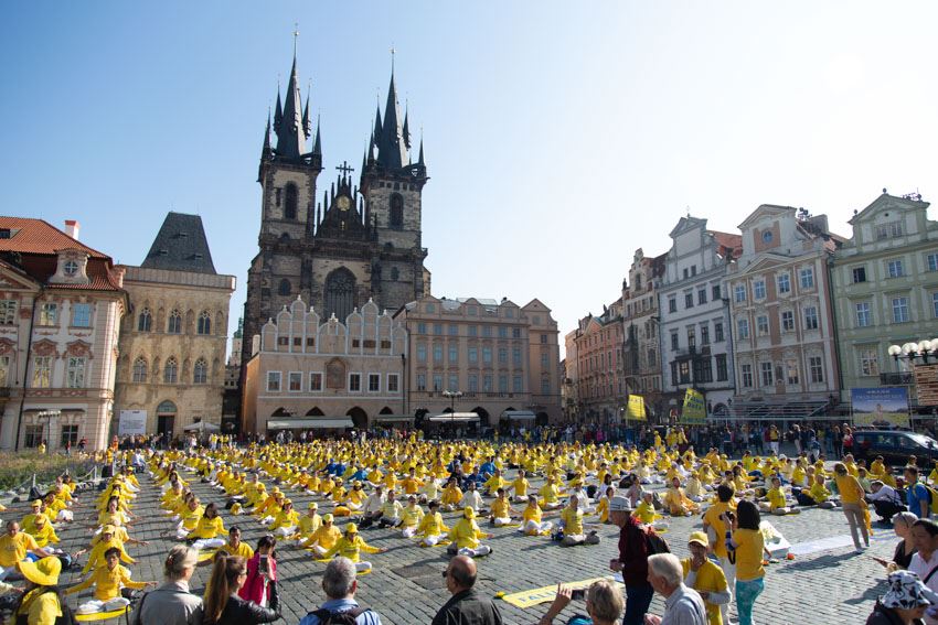 布拉格是一座欧洲历史名城,也是著名的旅游城市,景色错落有致,环境宜人。这里的人们心地善良,质朴真诚。这一天,来自世界各地的游人和捷克民众,看到法轮功学员祥和的炼功打坐,非常受震撼。了解到中共对修炼“真、善、忍”的法轮功学员残酷迫害,甚至强行摘取他们的器官来牟取暴利,他们都感到无比震惊。人们纷纷在反迫害征签表上签字,希望帮助法轮功学员,早日结束这场迫害。