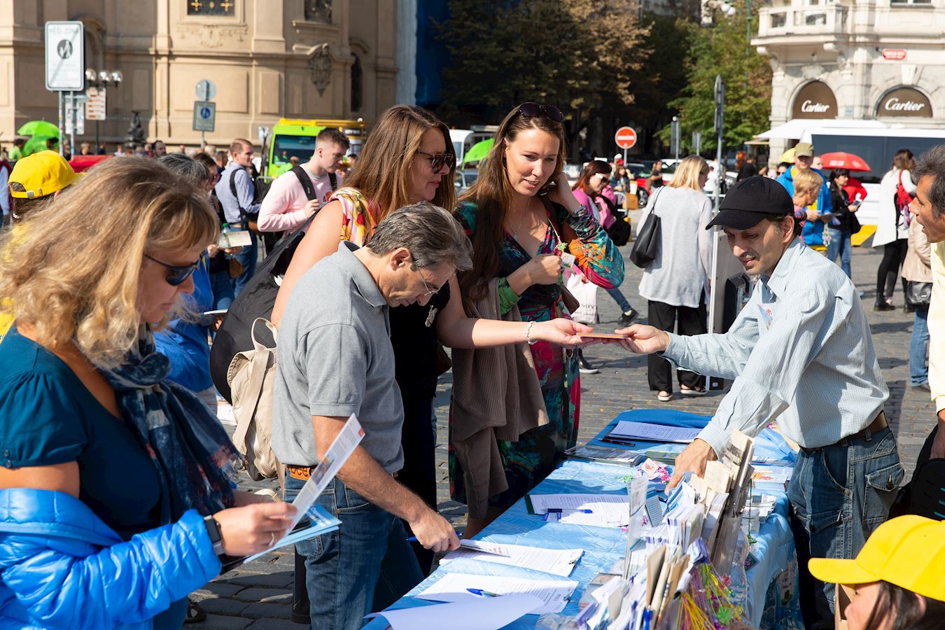 捷克儿童作家玛丽亚( Marie)对发生在中国的迫害非常震惊,在征签表上签字后说:“我们没法相信今天还有这样的事情发生,而且没有一家媒体报道,为了经济利益,政治家们不发声,任其发展。”