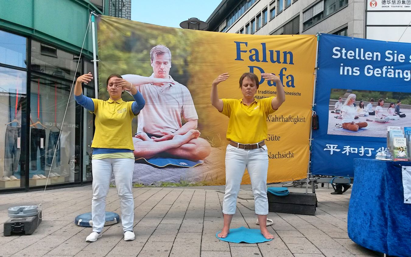 “我想要签名。”邬力克(Ulrike)在走近展位时开始说道。“我多年来一直在关注法轮功。你们让我很感动,这就是我想支持你们的原因。你们在公共场所举办活动,这对其他人认识这个简单的功法是有好处的。我也在练一种气功,但我仍然想支持法轮大法。”