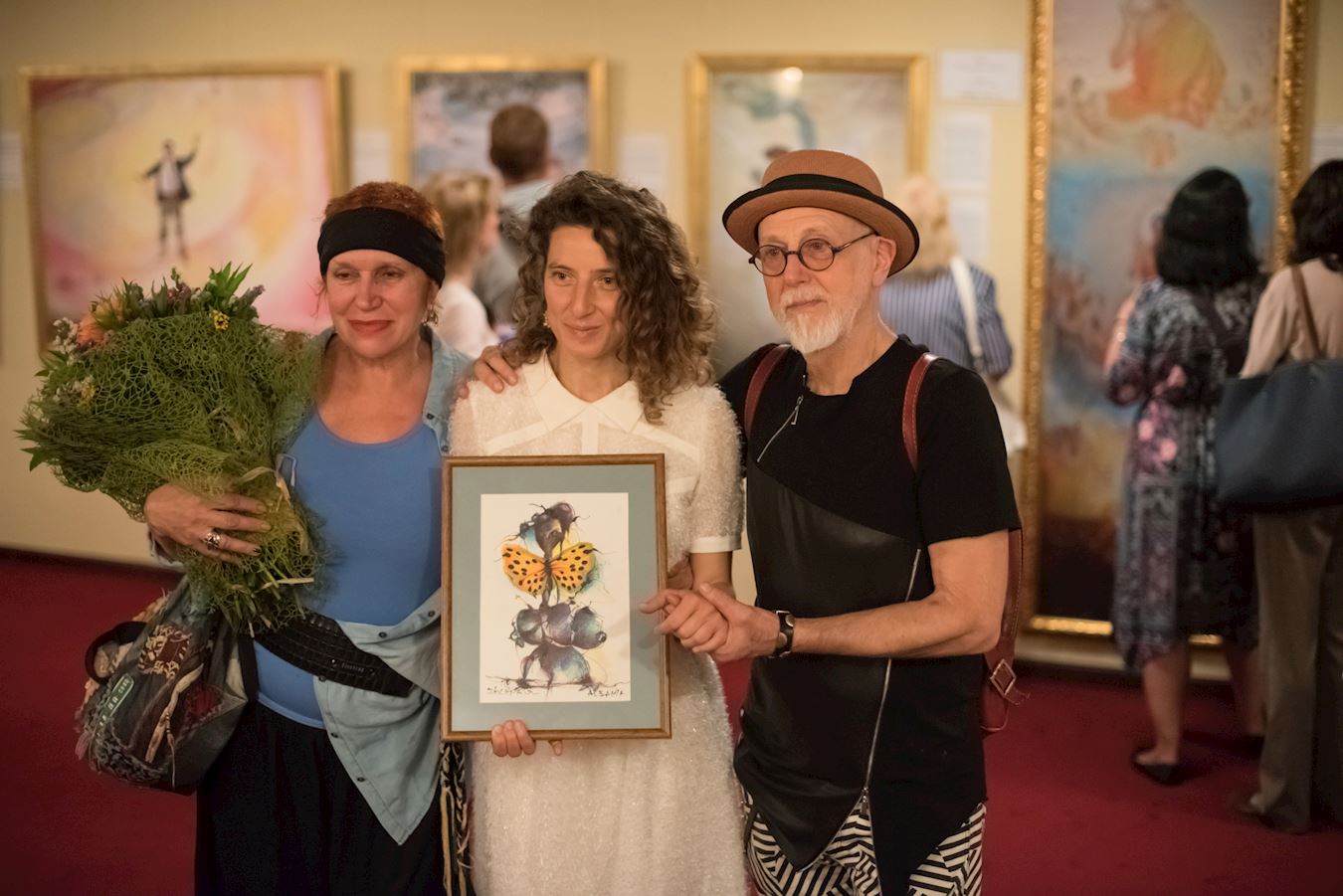 ![]() 图4:艺术家雅纳德齐夫(右)向主办者波特瓦(中)赠送了画作 |