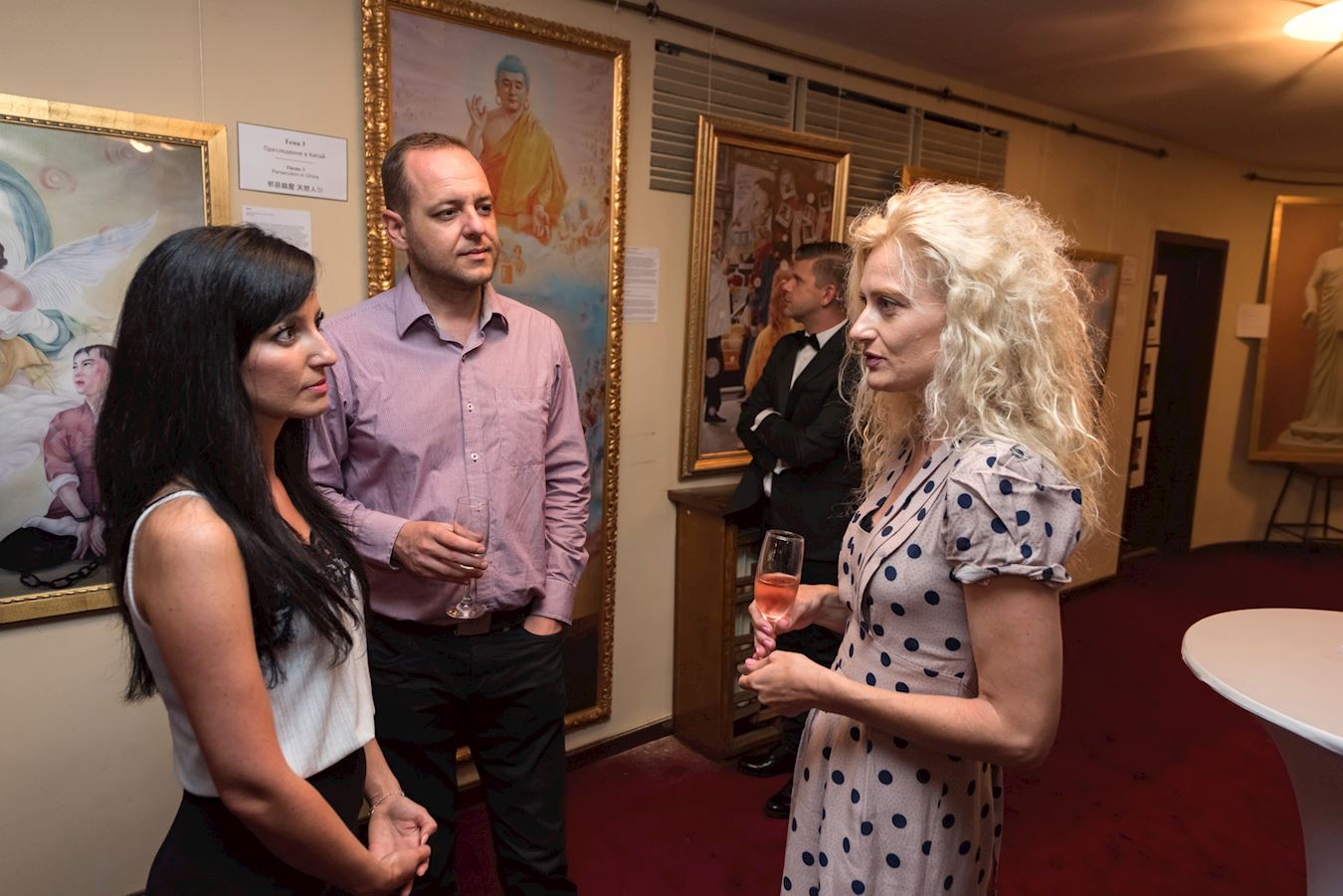 在三周的展出期间,许多人看到中共对法轮功学员的残酷迫害,流下眼泪。其中一位女士更是伤心欲绝的痛哭。许多人讲述了他们的亲人受到保加利亚共产党迫害的经历。还有些人,讲述了他们的父母当初相信了共产党的谎言,最后受骗上当的故事。所有的艺术家门都对美展的作品赞不绝口。